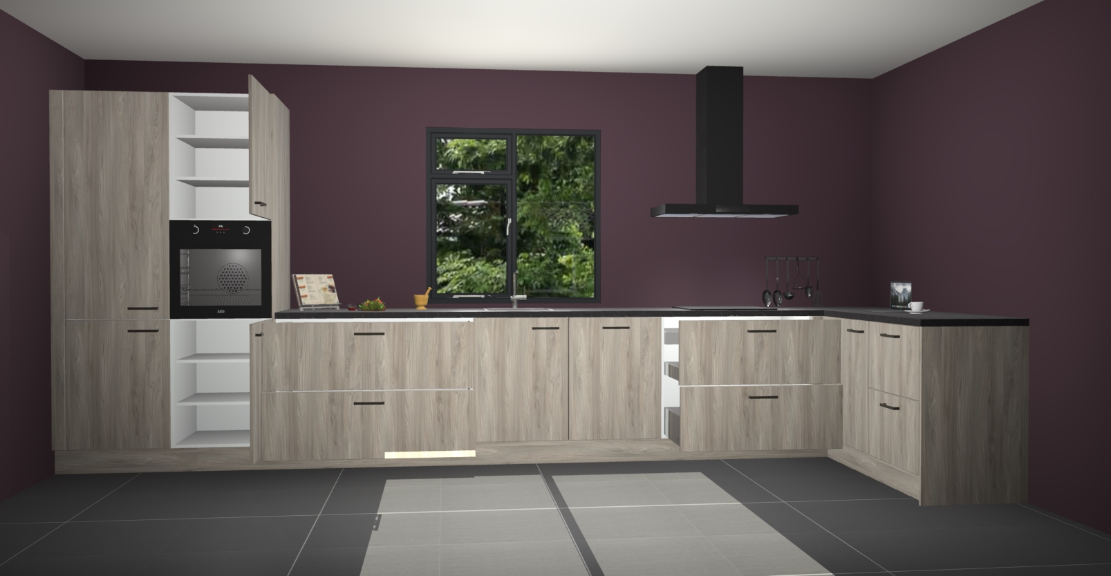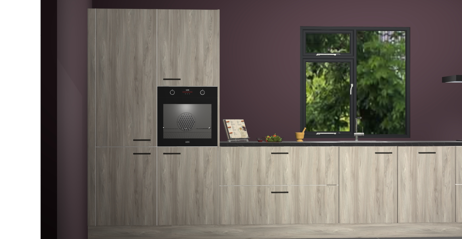 De Vuren keuken Lille wordt geleverd met vijf inbouwapparaten - een oven, inductiekookplaat, afzuigkap, vaatwasser en koelkast. Maar dat is nog niet alles! Na bestelling kunnen deze apparaten eenvoudig worden geüpgraded naar premium AEG-apparatuur. Bovendien is er zelfs de optie om de oven te vervangen door een combimagnetron of uw inductiekookplaat te vervangen door een kookplaat met geïntegreerde afzuiging.