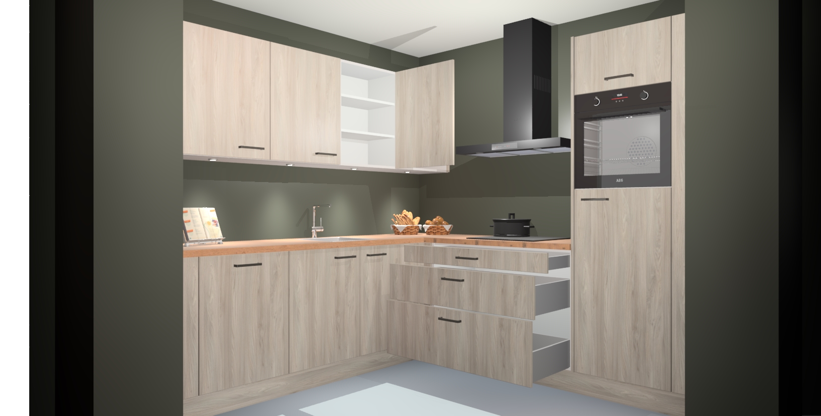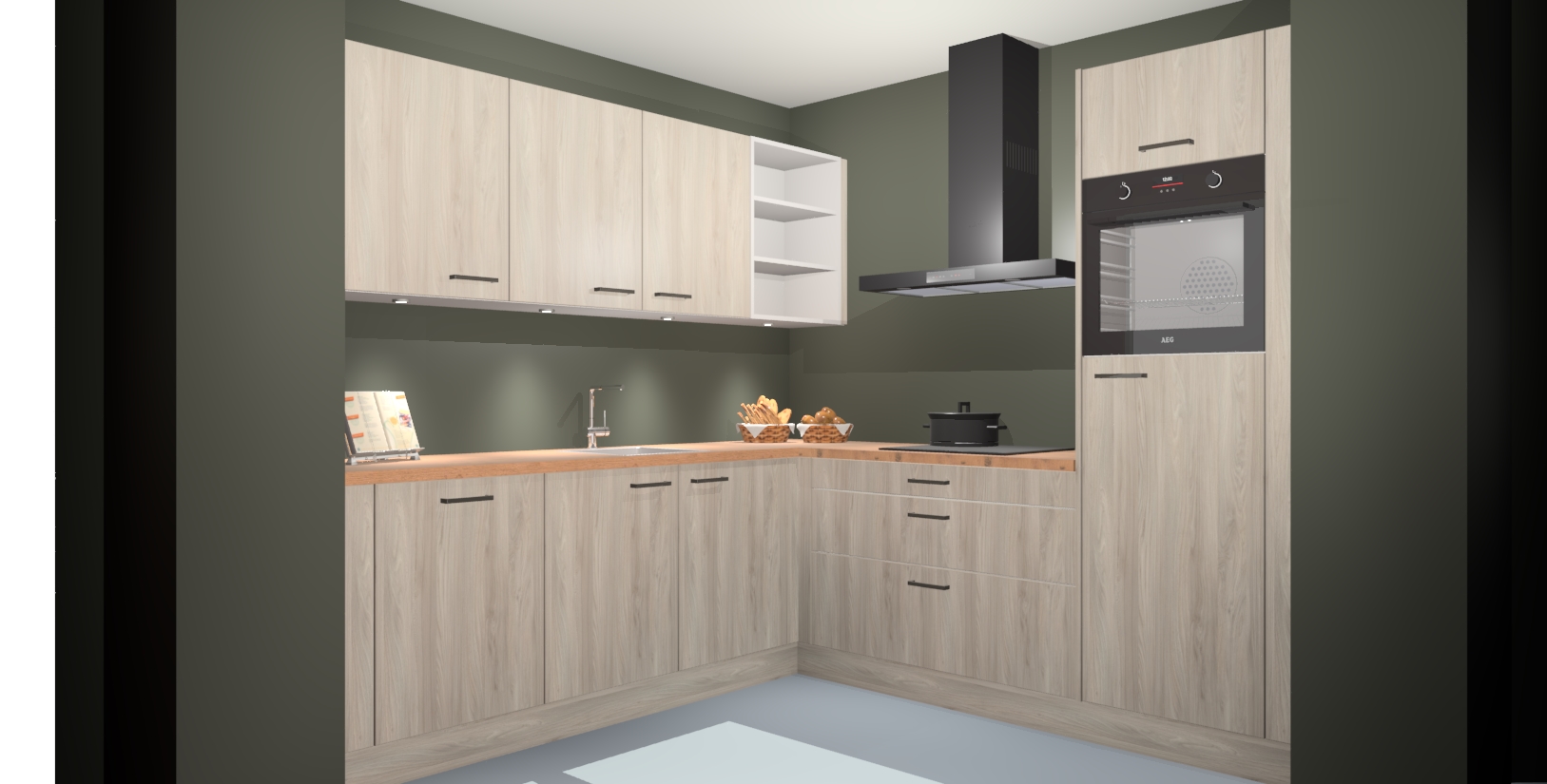 Met een modern, tijdloos design en ruime opslagruimte, zult u zich in no-time thuis voelen in uw nieuwe keuken. Uw leven wordt eenvoudiger met de soft-close deuren die voor het ultieme stille comfort zorgen - geen geluid dat u stoort terwijl u kookt. Ook is de keuken voorzien van 5 ingebouwde apparaten: een oven, inductie kookplaat, afzuigkap, vaatwasser en koelkast. Deze kunnen gemakkelijk na bestelling worden bijgewerkt naar AEG - waardoor uw luxe ervaring compleet is.