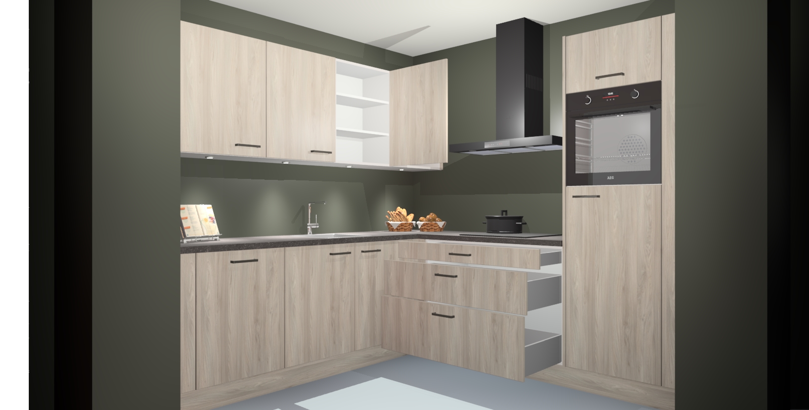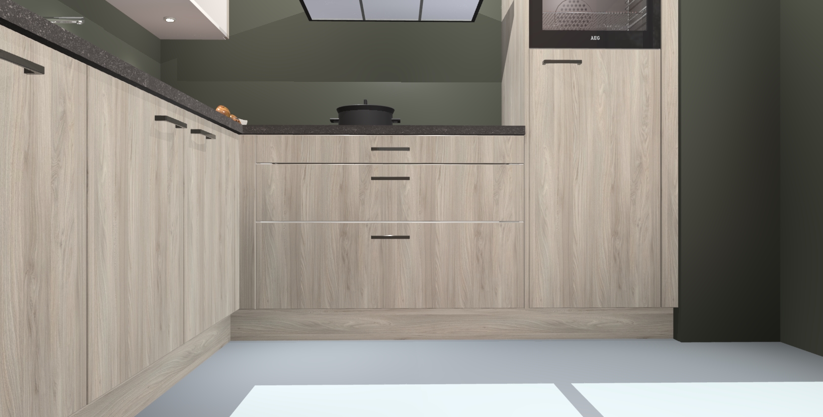 Met een modern, tijdloos design en ruime opslagruimte, zult u zich in no-time thuis voelen in uw nieuwe keuken. Uw leven wordt eenvoudiger met de soft-close deuren die voor het ultieme stille comfort zorgen - geen geluid dat u stoort terwijl u kookt. Ook is de keuken voorzien van 5 ingebouwde apparaten: een oven, inductie kookplaat, afzuigkap, vaatwasser en koelkast. Deze kunnen gemakkelijk na bestelling worden bijgewerkt naar AEG - waardoor uw luxe ervaring compleet is.