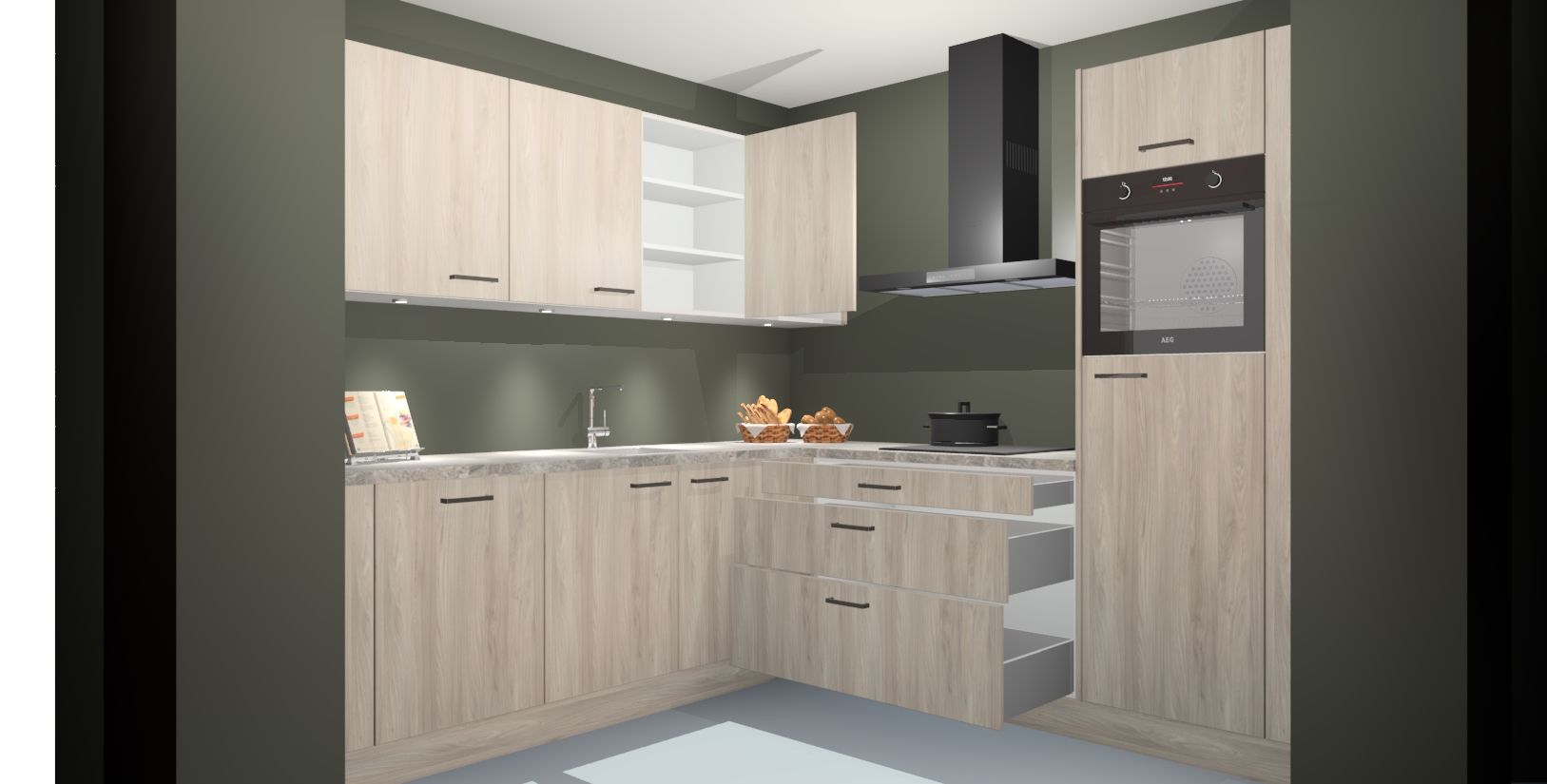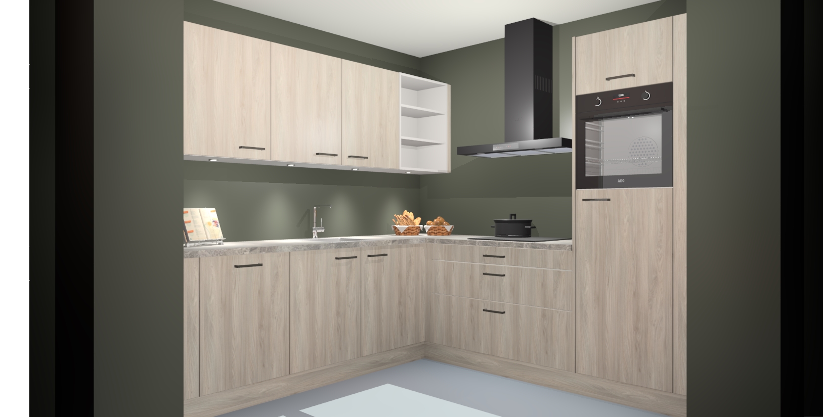 Met een modern, tijdloos design en ruime opslagruimte, zult u zich in no-time thuis voelen in uw nieuwe keuken. Uw leven wordt eenvoudiger met de soft-close deuren die voor het ultieme stille comfort zorgen - geen geluid dat u stoort terwijl u kookt. Ook is de keuken voorzien van 5 ingebouwde apparaten: een oven, inductie kookplaat, afzuigkap, vaatwasser en koelkast. Deze kunnen gemakkelijk na bestelling worden bijgewerkt naar AEG - waardoor uw luxe ervaring compleet is.