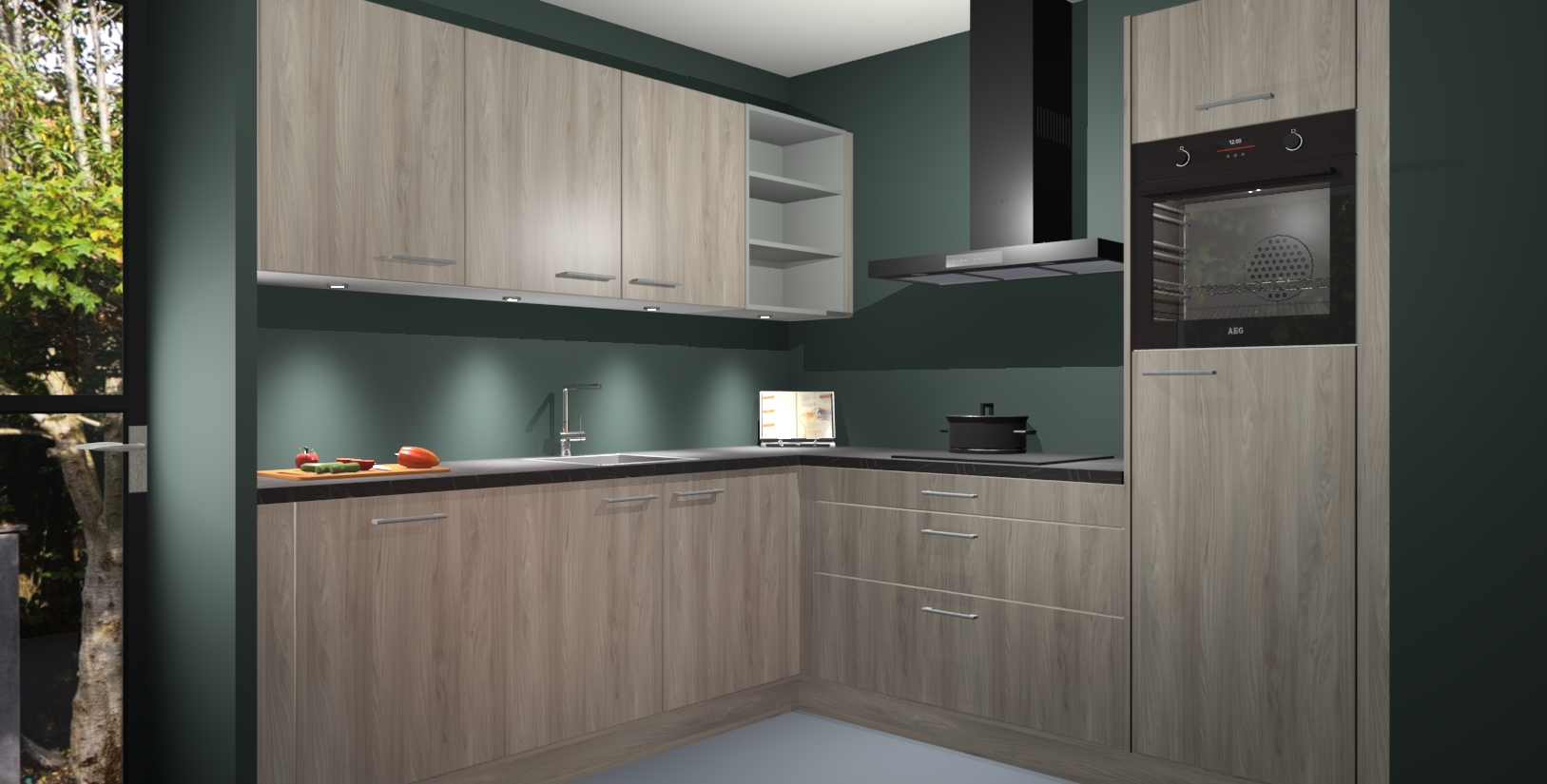 Met een modern, tijdloos design en ruime opslagruimte, zult u zich in no-time thuis voelen in uw nieuwe keuken. Uw leven wordt eenvoudiger met de soft-close deuren die voor het ultieme stille comfort zorgen - geen geluid dat u stoort terwijl u kookt. Ook is de keuken voorzien van 5 ingebouwde apparaten: een oven, inductie kookplaat, afzuigkap, vaatwasser en koelkast. Deze kunnen gemakkelijk na bestelling worden bijgewerkt naar AEG - waardoor uw luxe ervaring compleet is.