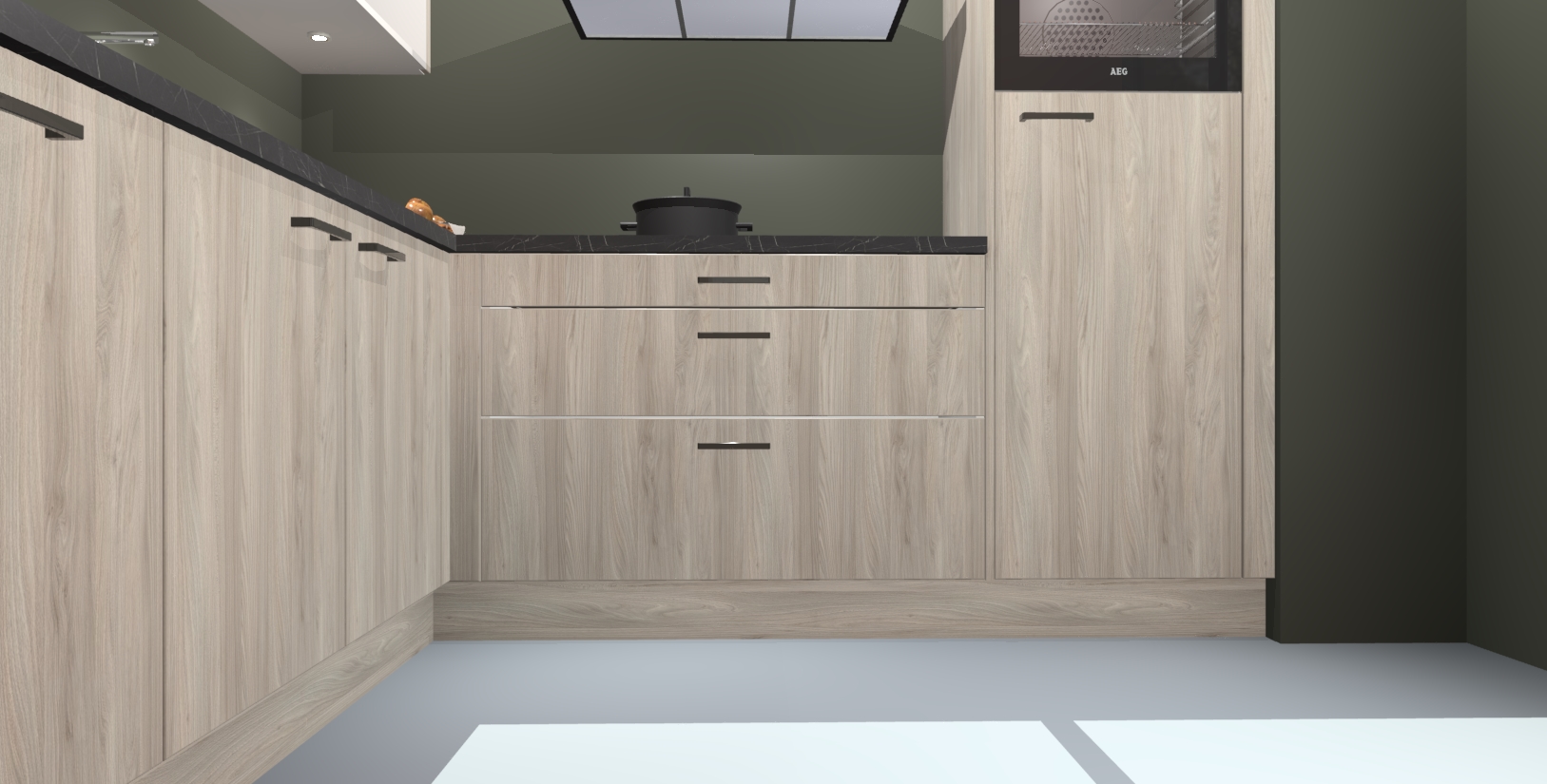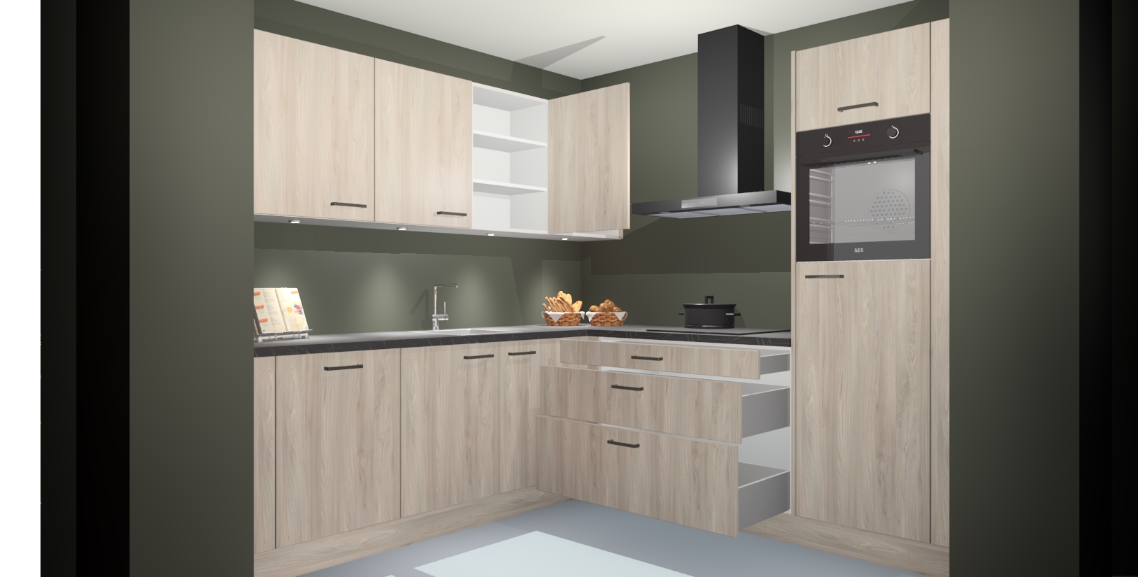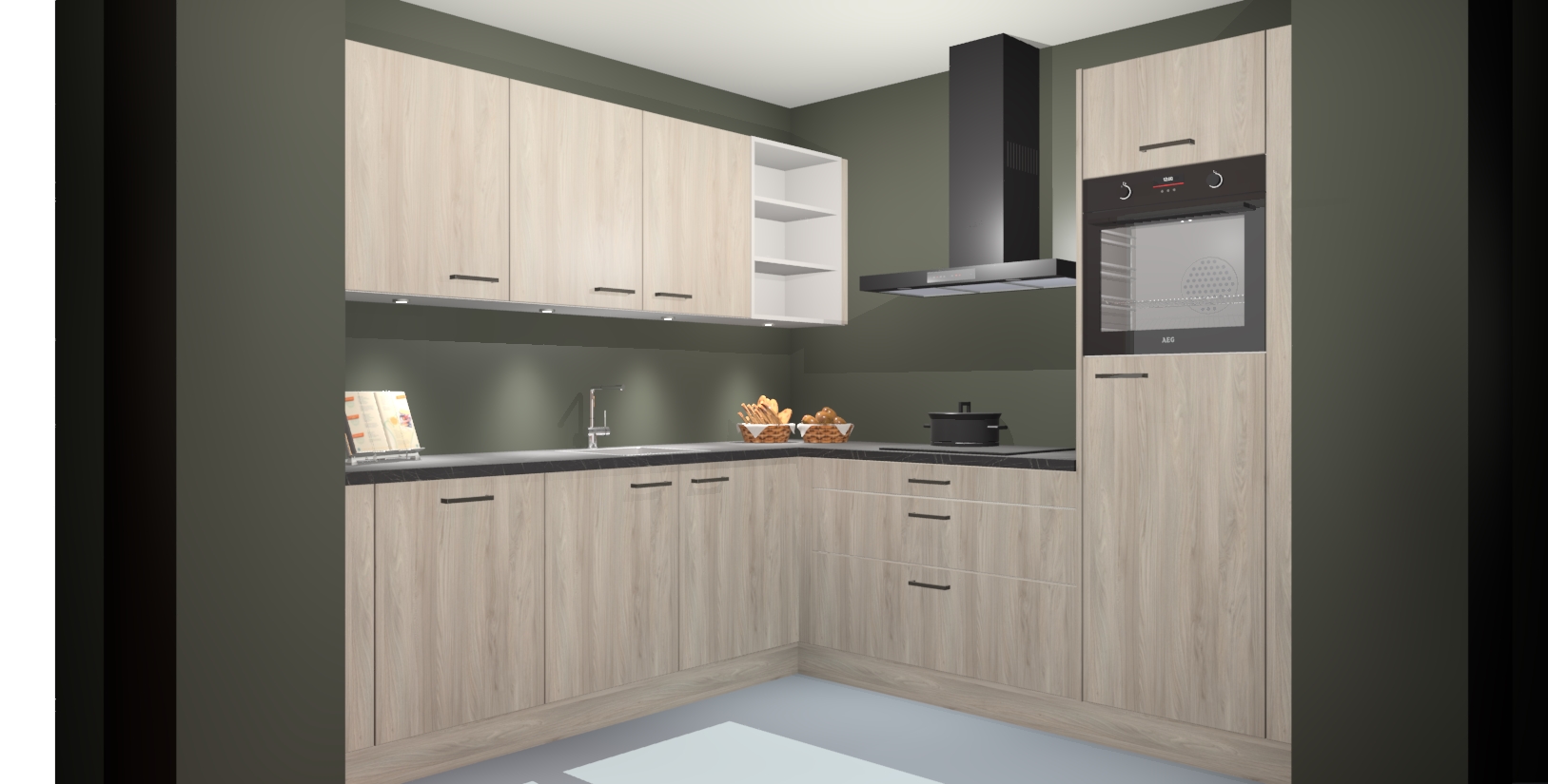 Met een modern, tijdloos design en ruime opslagruimte, zult u zich in no-time thuis voelen in uw nieuwe keuken. Uw leven wordt eenvoudiger met de soft-close deuren die voor het ultieme stille comfort zorgen - geen geluid dat u stoort terwijl u kookt. Ook is de keuken voorzien van 5 ingebouwde apparaten: een oven, inductie kookplaat, afzuigkap, vaatwasser en koelkast. Deze kunnen gemakkelijk na bestelling worden bijgewerkt naar AEG - waardoor uw luxe ervaring compleet is.
