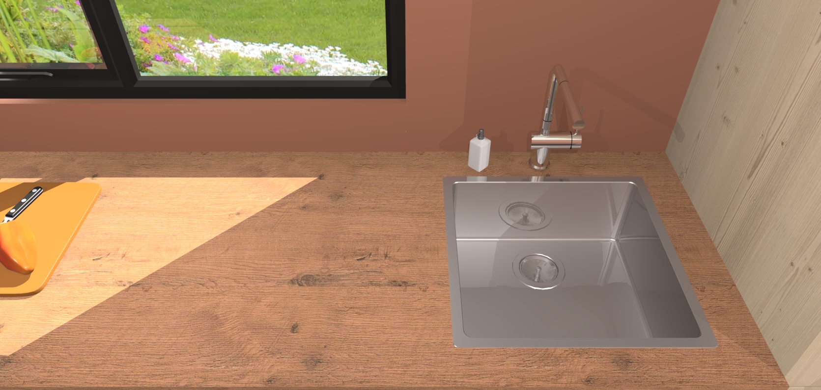 - De spoelbak is nog niet in gevreesd. Dit dient tijdens het werk gedaan te worden