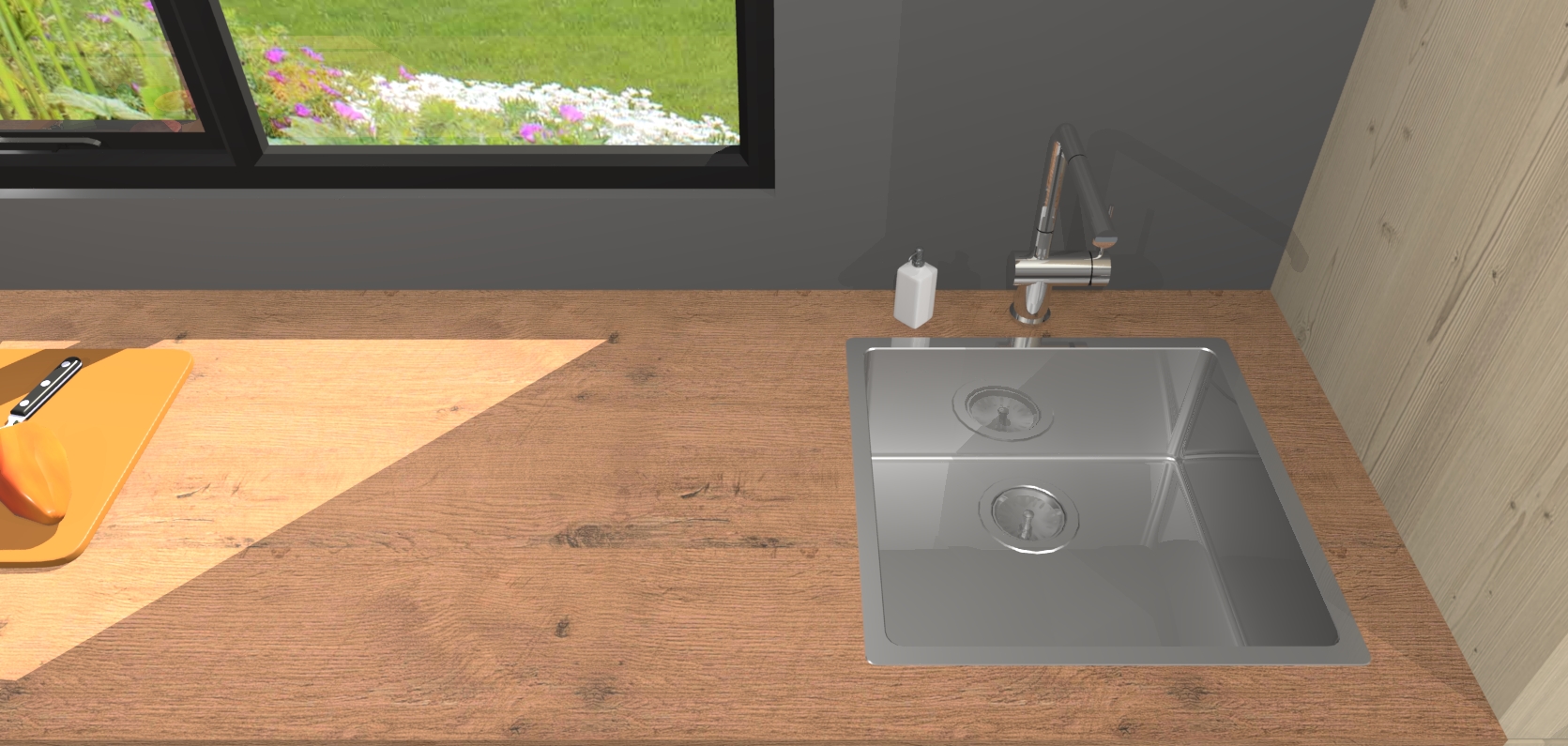 - De spoelbak is nog niet in gevreesd. Dit dient tijdens het werk gedaan te worden