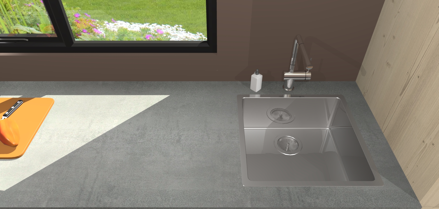 - De spoelbak is nog niet in gevreesd. Dit dient tijdens het werk gedaan te worden