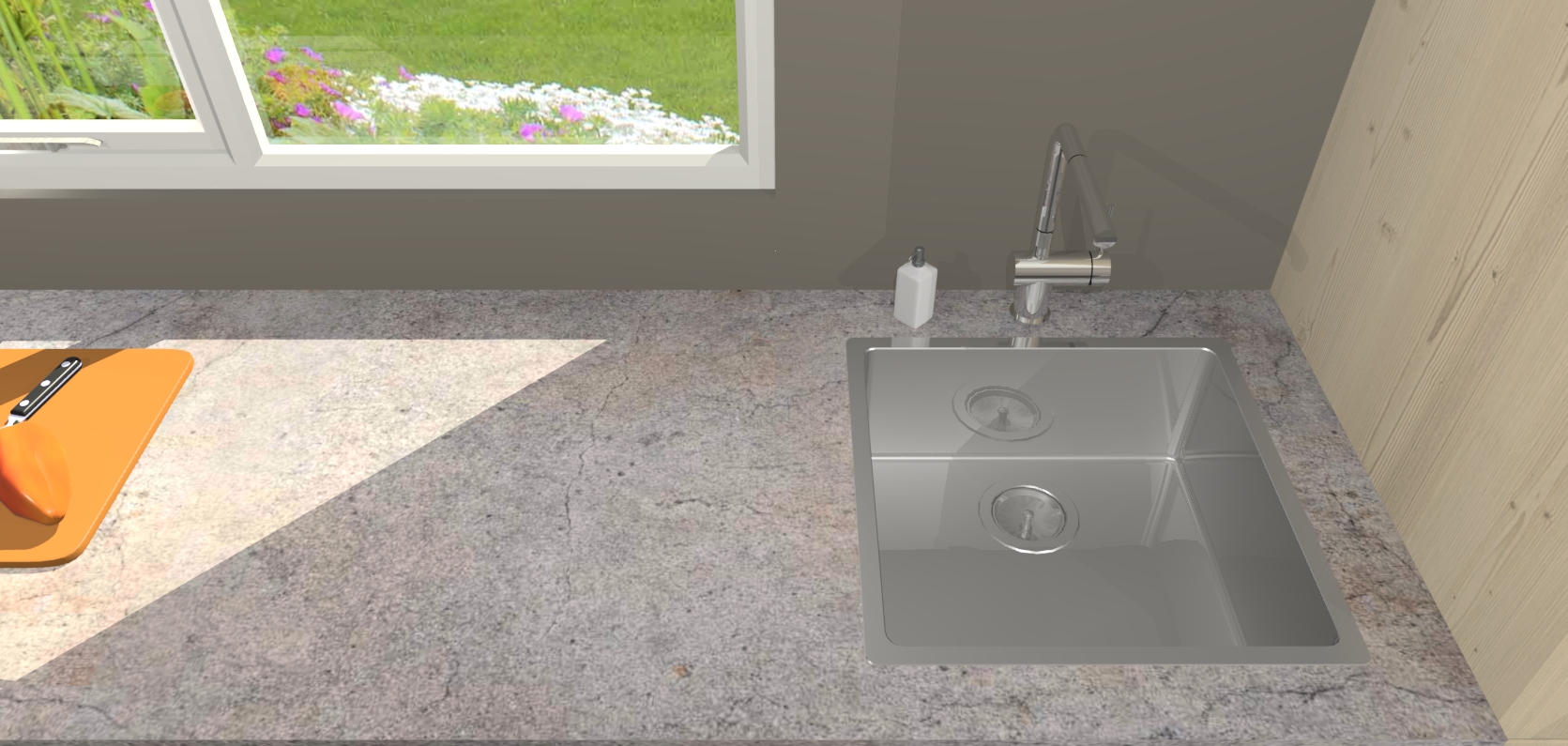 • De spoelbak is nog niet in gevreesd. Dit dient tijdens het werk gedaan te worden