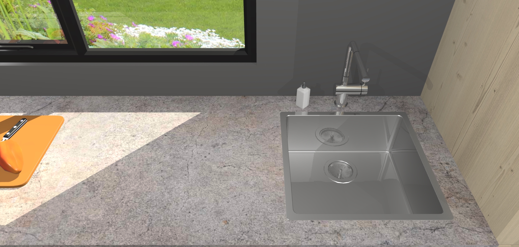 - De spoelbak is nog niet in gevreesd. Dit dient tijdens het werk gedaan te worden