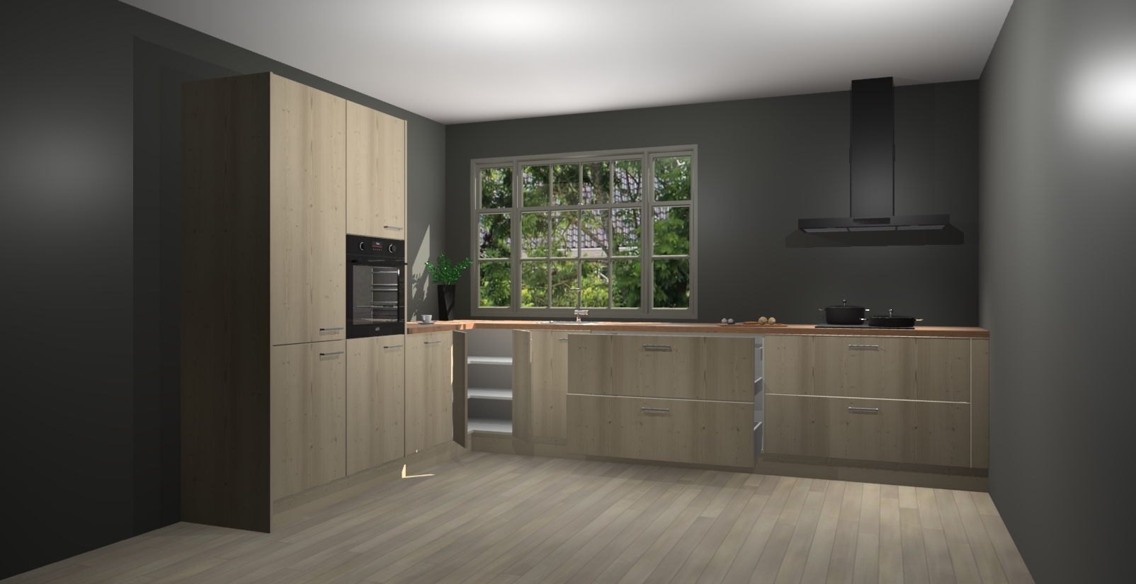 Kom dichtbij de perfecte keuken van uw dromen met de Vuren keuken Malaga. Met een prachtige houtlook en eigentijds ontwerp, straalt deze keuken warmte en sfeer uit. Of u nu liefhebber bent van traditionele of moderne stijlen, er is genoeg ruimte om aan al uw behoeften te voldoen.