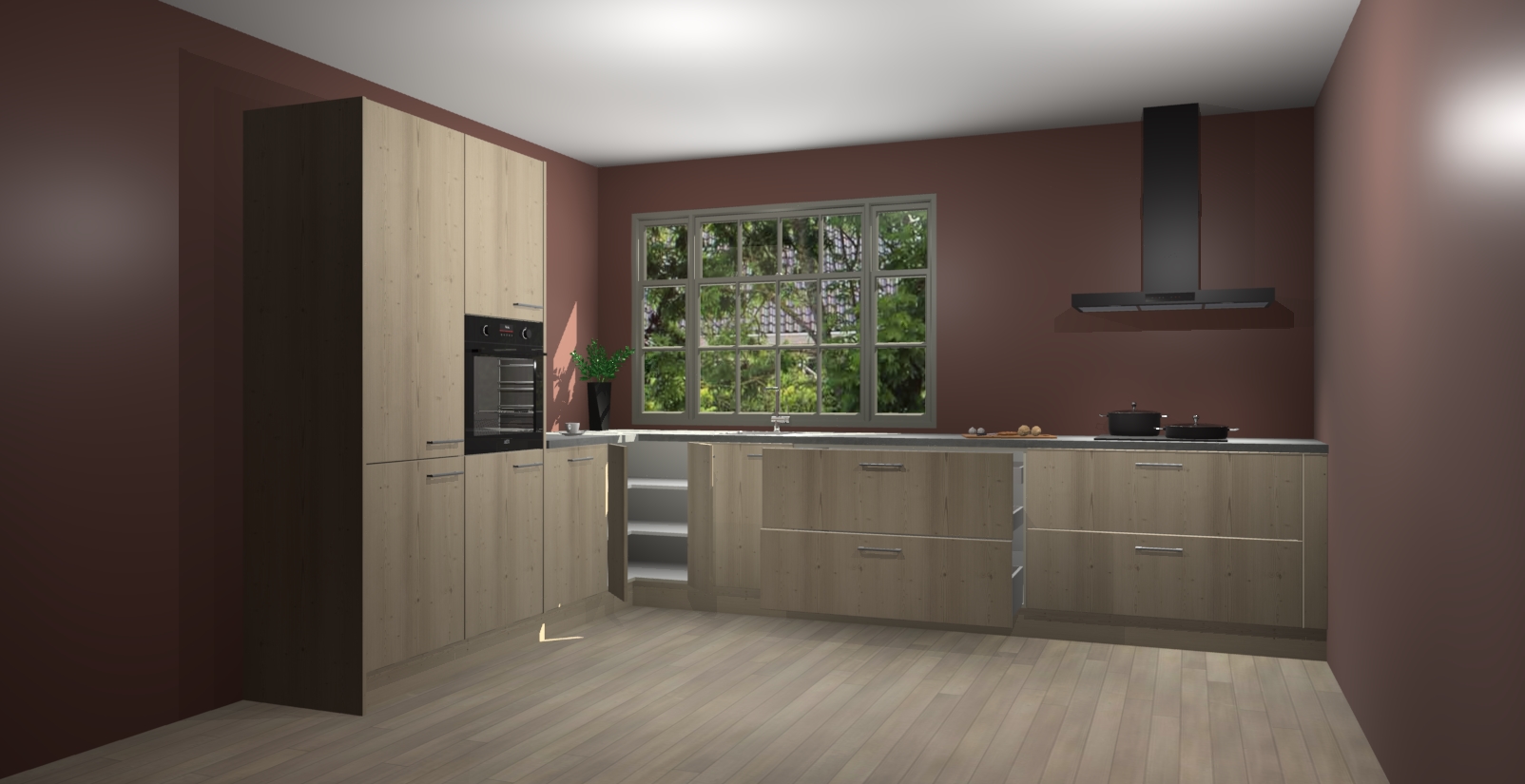 Kom dichtbij de perfecte keuken van uw dromen met de Vuren keuken Malaga. Met een prachtige houtlook en eigentijds ontwerp, straalt deze keuken warmte en sfeer uit. Of u nu liefhebber bent van traditionele of moderne stijlen, er is genoeg ruimte om aan al uw behoeften te voldoen.