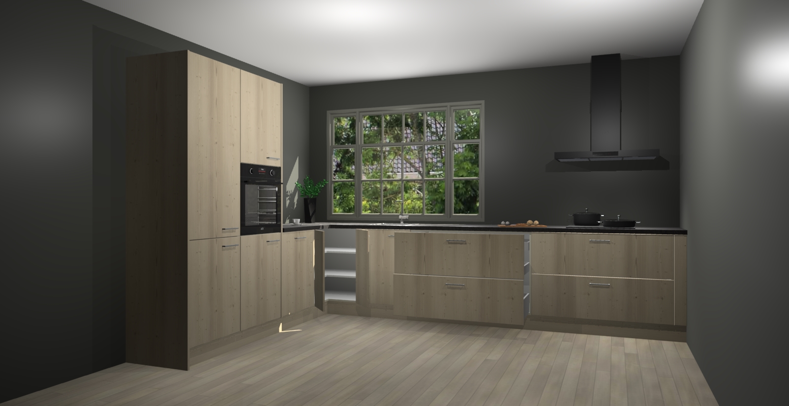 Kom dichtbij de perfecte keuken van uw dromen met de Vuren keuken Malaga. Met een prachtige houtlook en eigentijds ontwerp, straalt deze keuken warmte en sfeer uit. Of u nu liefhebber bent van traditionele of moderne stijlen, er is genoeg ruimte om aan al uw behoeften te voldoen.
