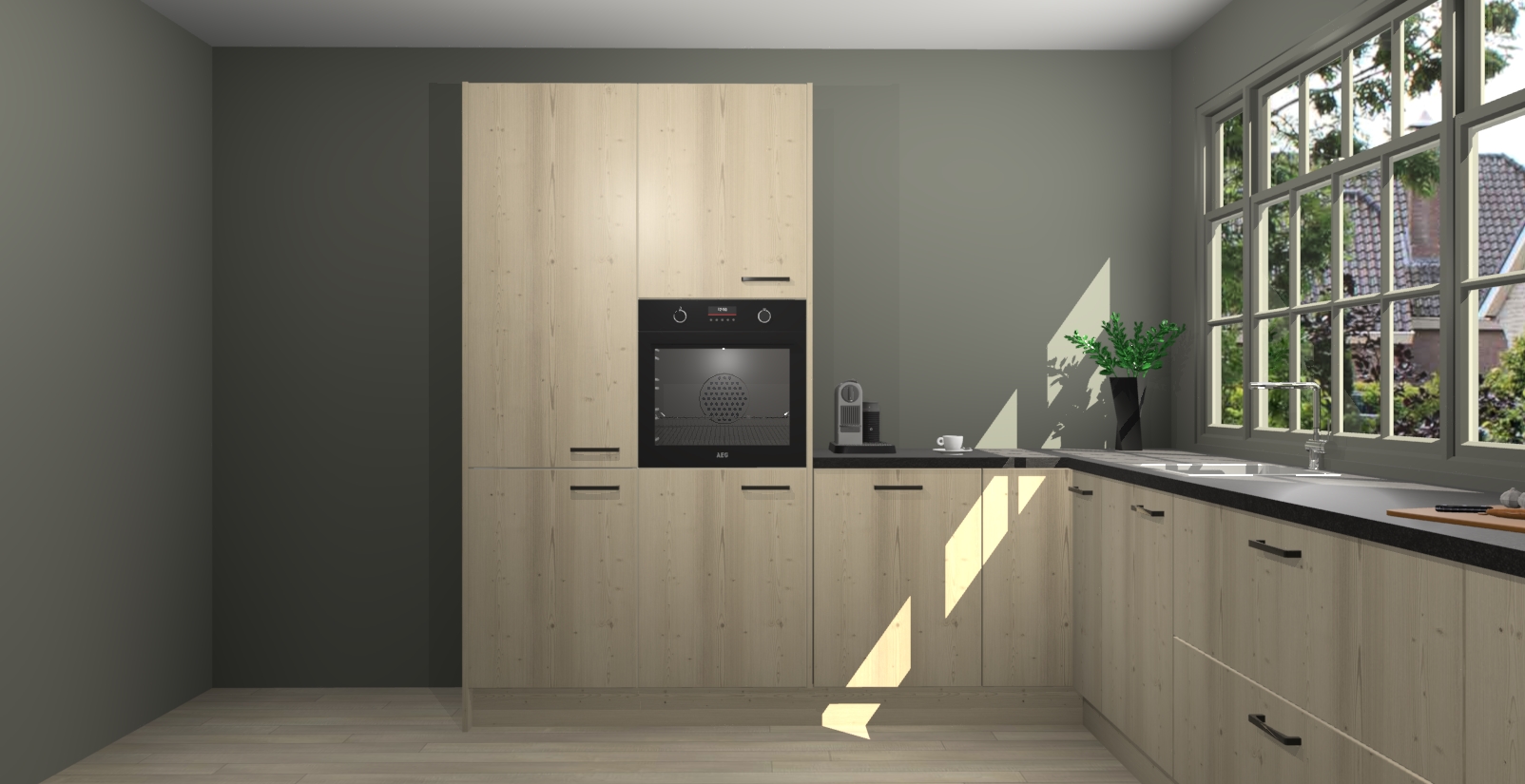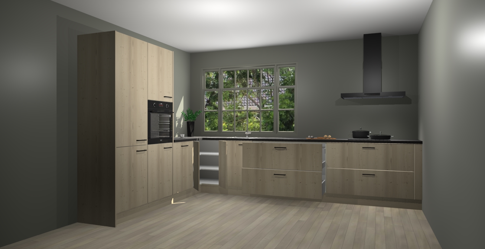 Kom dichtbij de perfecte keuken van uw dromen met de Vuren keuken Malaga. Met een prachtige houtlook en eigentijds ontwerp, straalt deze keuken warmte en sfeer uit. Of u nu liefhebber bent van traditionele of moderne stijlen, er is genoeg ruimte om aan al uw behoeften te voldoen.