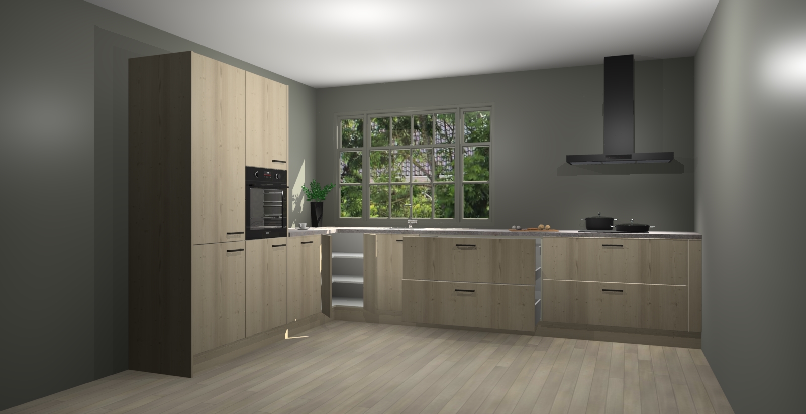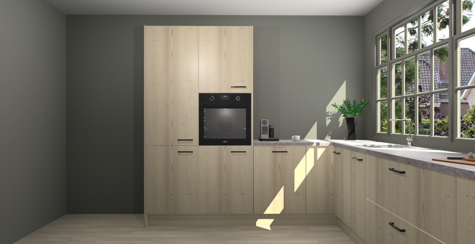 Kom dichtbij de perfecte keuken van uw dromen met de Vuren keuken Malaga. Met een prachtige houtlook en eigentijds ontwerp, straalt deze keuken warmte en sfeer uit. Of u nu liefhebber bent van traditionele of moderne stijlen, er is genoeg ruimte om aan al uw behoeften te voldoen.
