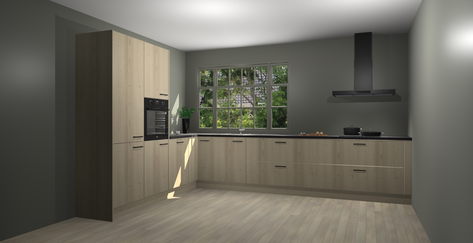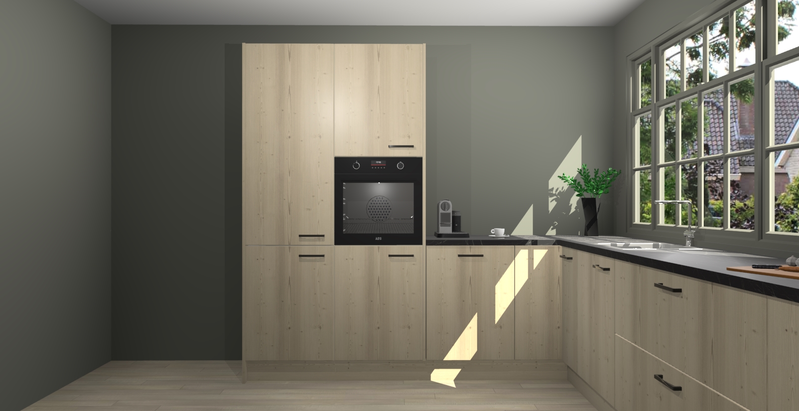 Kom dichtbij de perfecte keuken van uw dromen met de Vuren keuken Malaga. Met een prachtige houtlook en eigentijds ontwerp, straalt deze keuken warmte en sfeer uit. Of u nu liefhebber bent van traditionele of moderne stijlen, er is genoeg ruimte om aan al uw behoeften te voldoen.