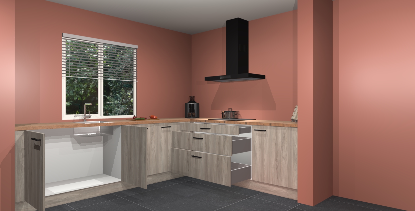 - Bij een hoekwerkblad zijn de hoeken in gevreesd en op maat gemaakt