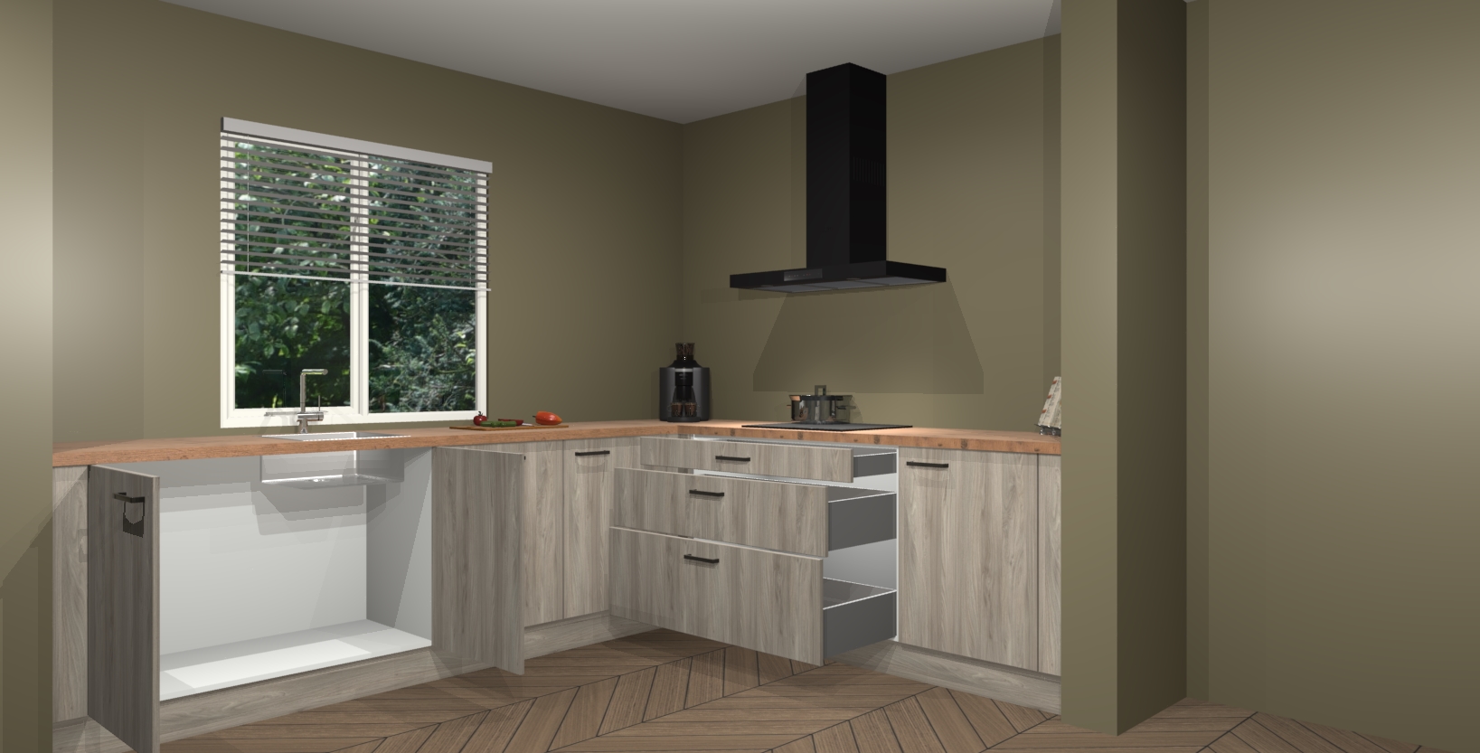 - Bij een hoekwerkblad zijn de hoeken in gevreesd en op maat gemaakt