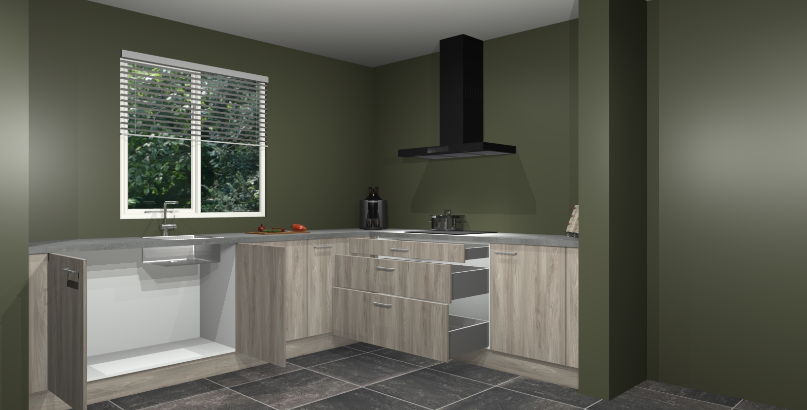 - Bij een hoekwerkblad zijn de hoeken in gevreesd en op maat gemaakt