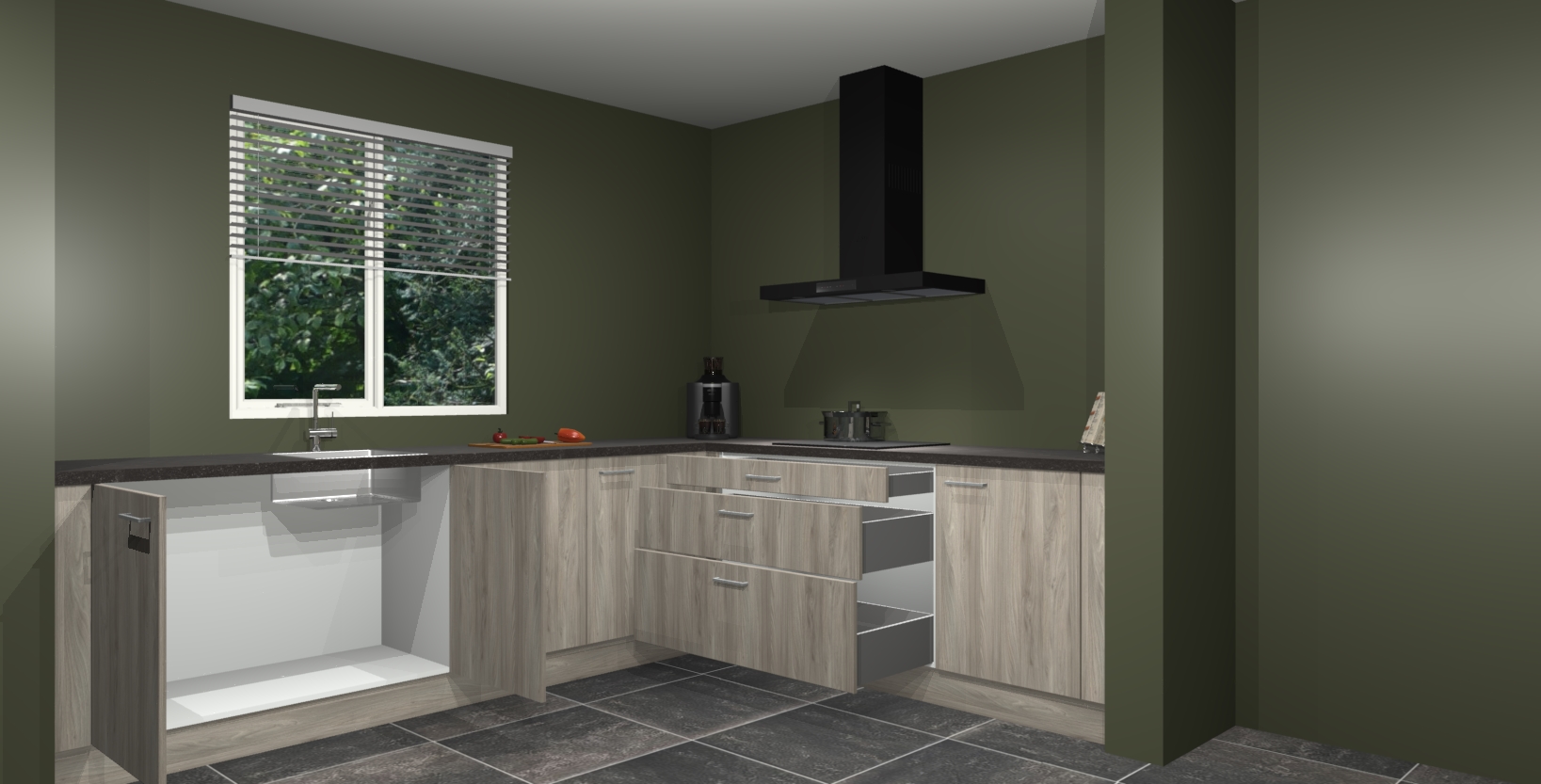 In deze box zijn alle kleuren verzameld van de deuren en werkbladen. Vraag de gratis kleurenbox aan en kijk thuis rustig verder!