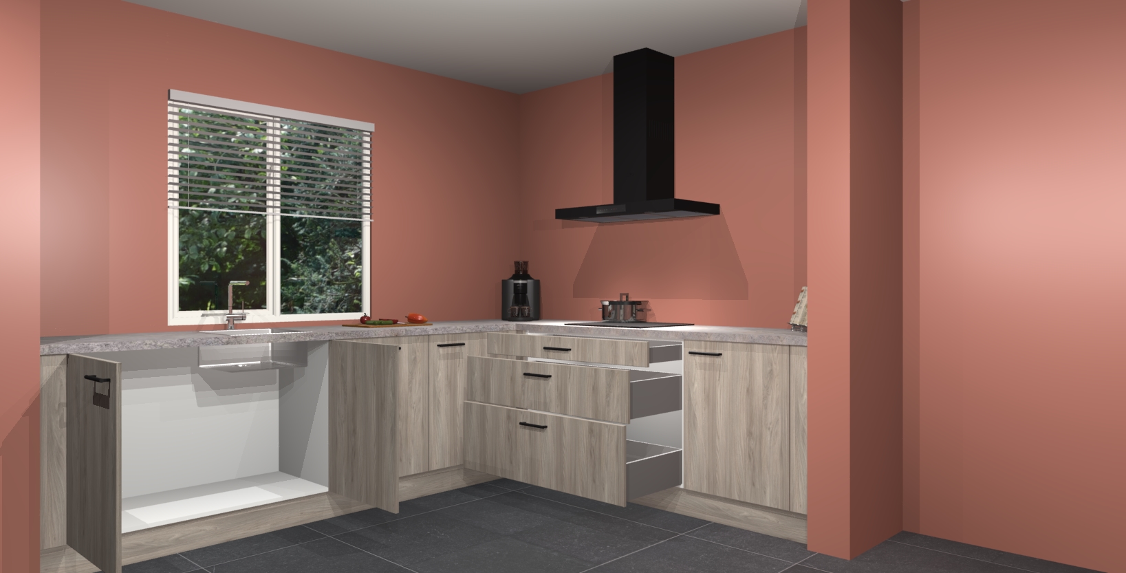 - Bij een hoekwerkblad zijn de hoeken in gevreesd en op maat gemaakt