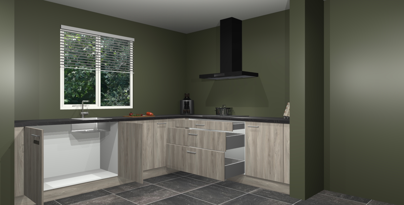 Hoekonderkast met le-mans systeem