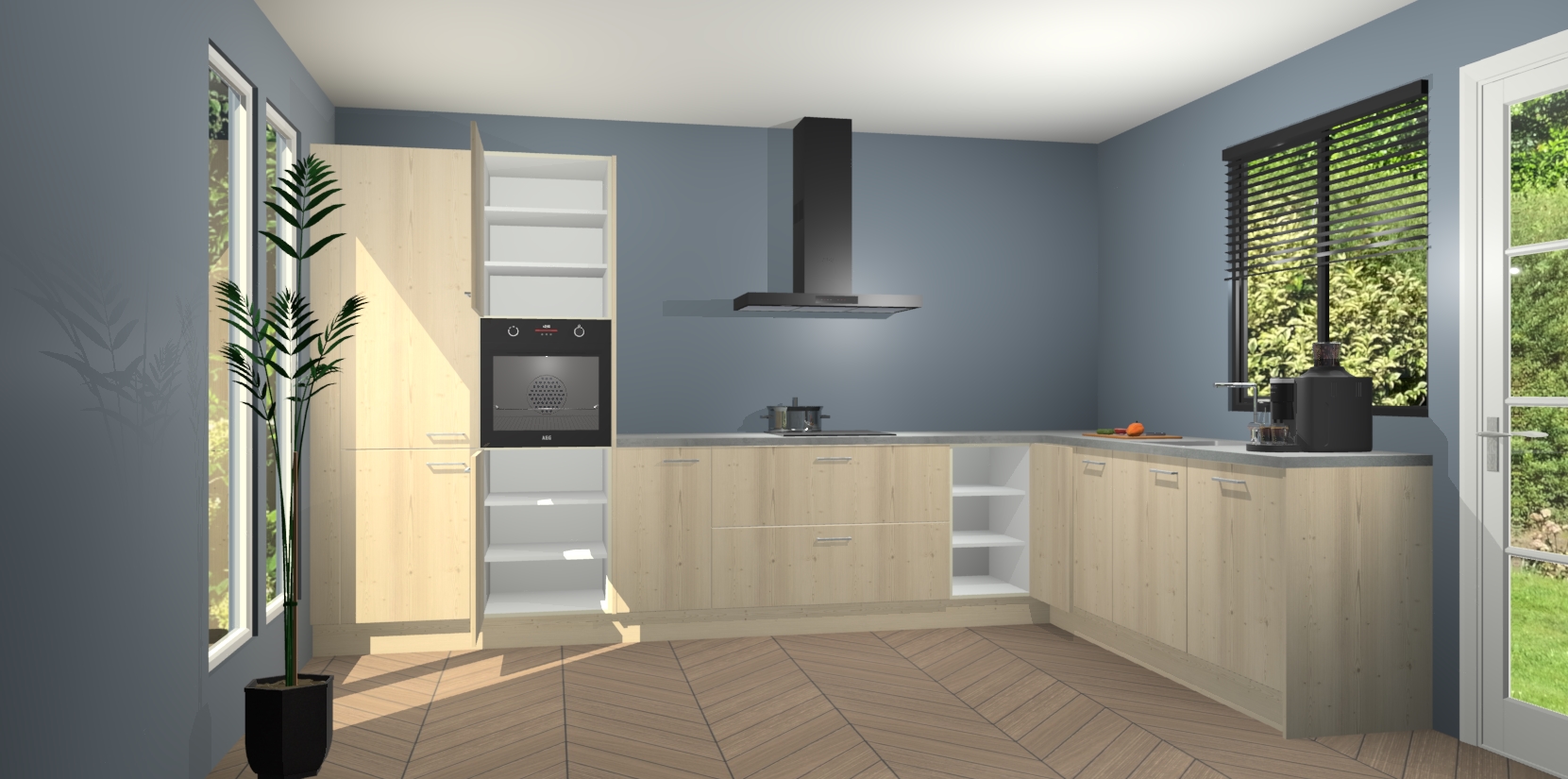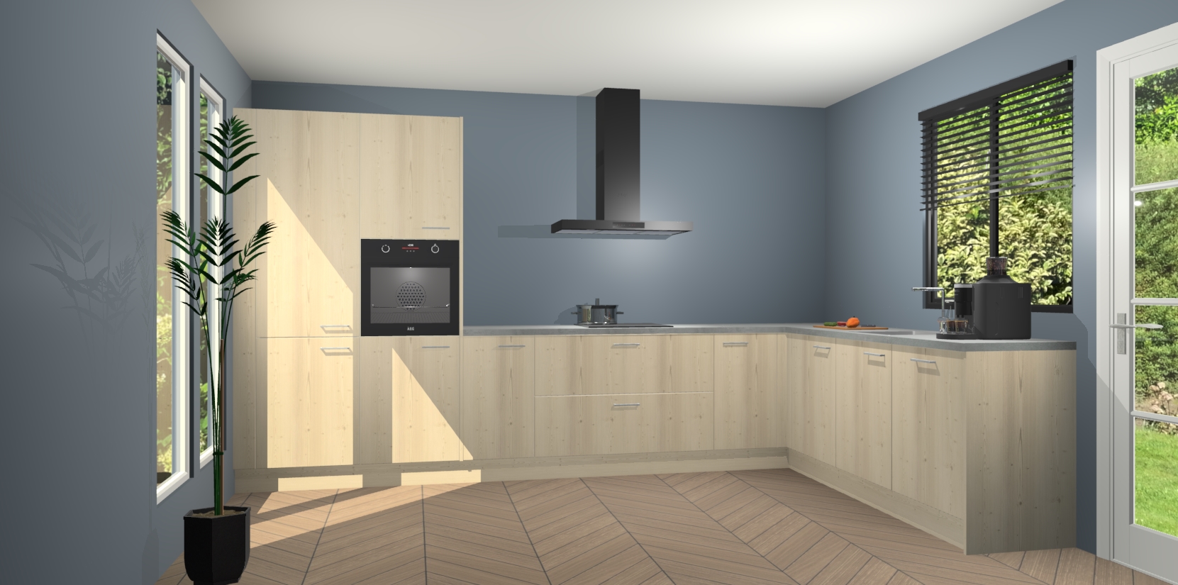 Met een modern, tijdloos design en ruime opslagruimte, zult u zich in no-time thuis voelen in uw nieuwe keuken. Uw leven wordt eenvoudiger met de soft-close deuren die voor het ultieme stille comfort zorgen - geen geluid dat u stoort terwijl u kookt. Ook is de keuken voorzien van 5 ingebouwde apparaten: een oven, inductie kookplaat, afzuigkap, vaatwasser en koelkast. Deze kunnen gemakkelijk na bestelling worden bijgewerkt naar AEG - waardoor uw luxe ervaring compleet is.