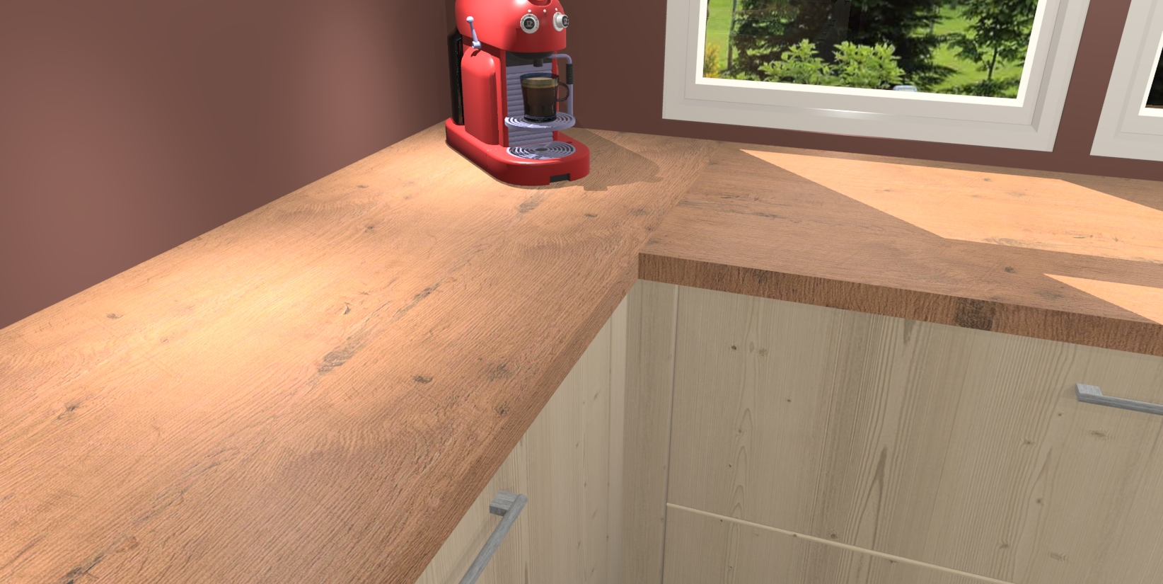 - Bij een hoekwerkblad zijn de hoeken in gevreesd en op maat gemaakt