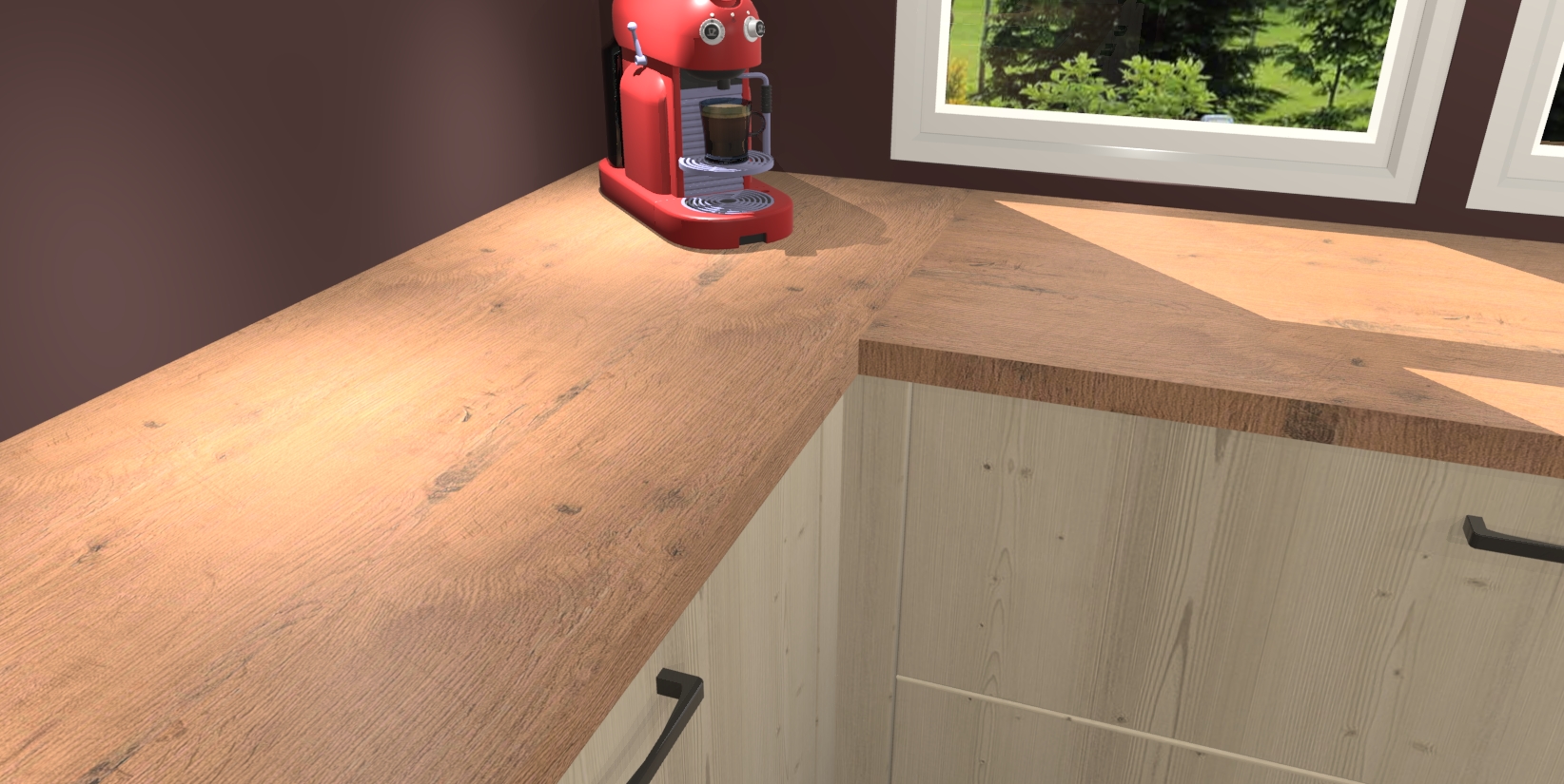 - Bij een hoekwerkblad zijn de hoeken in gevreesd en op maat gemaakt