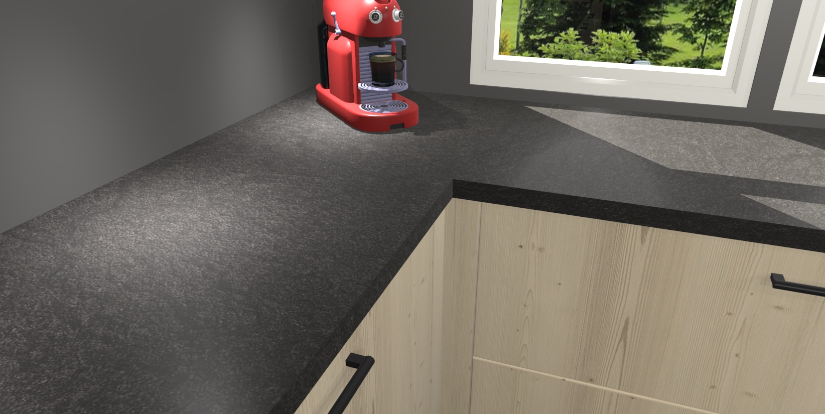 - Bij een hoekwerkblad zijn de hoeken in gevreesd en op maat gemaakt