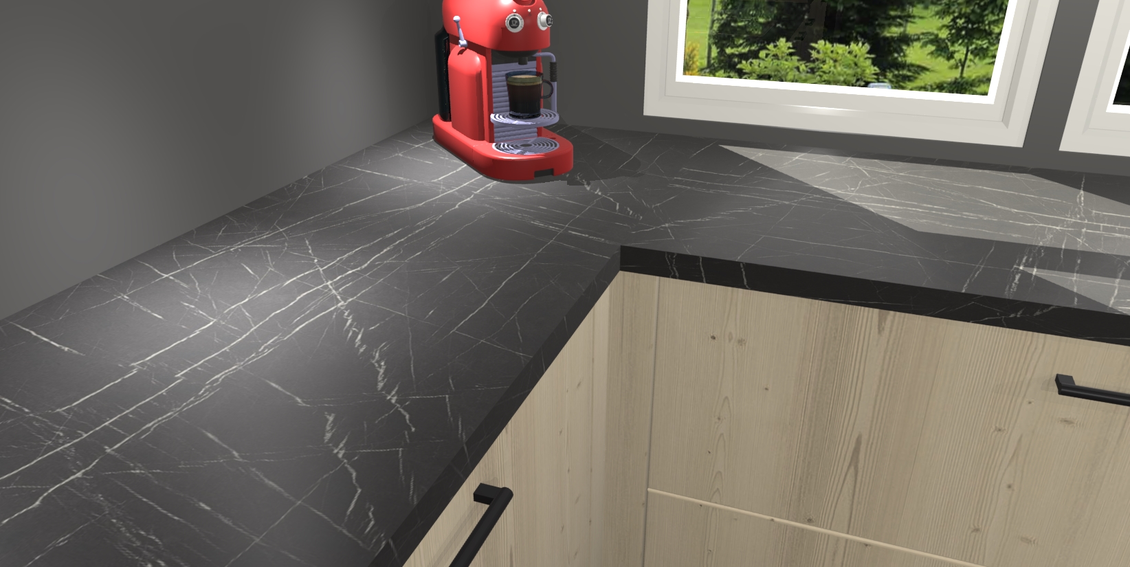 - Bij een hoekwerkblad zijn de hoeken in gevreesd en op maat gemaakt