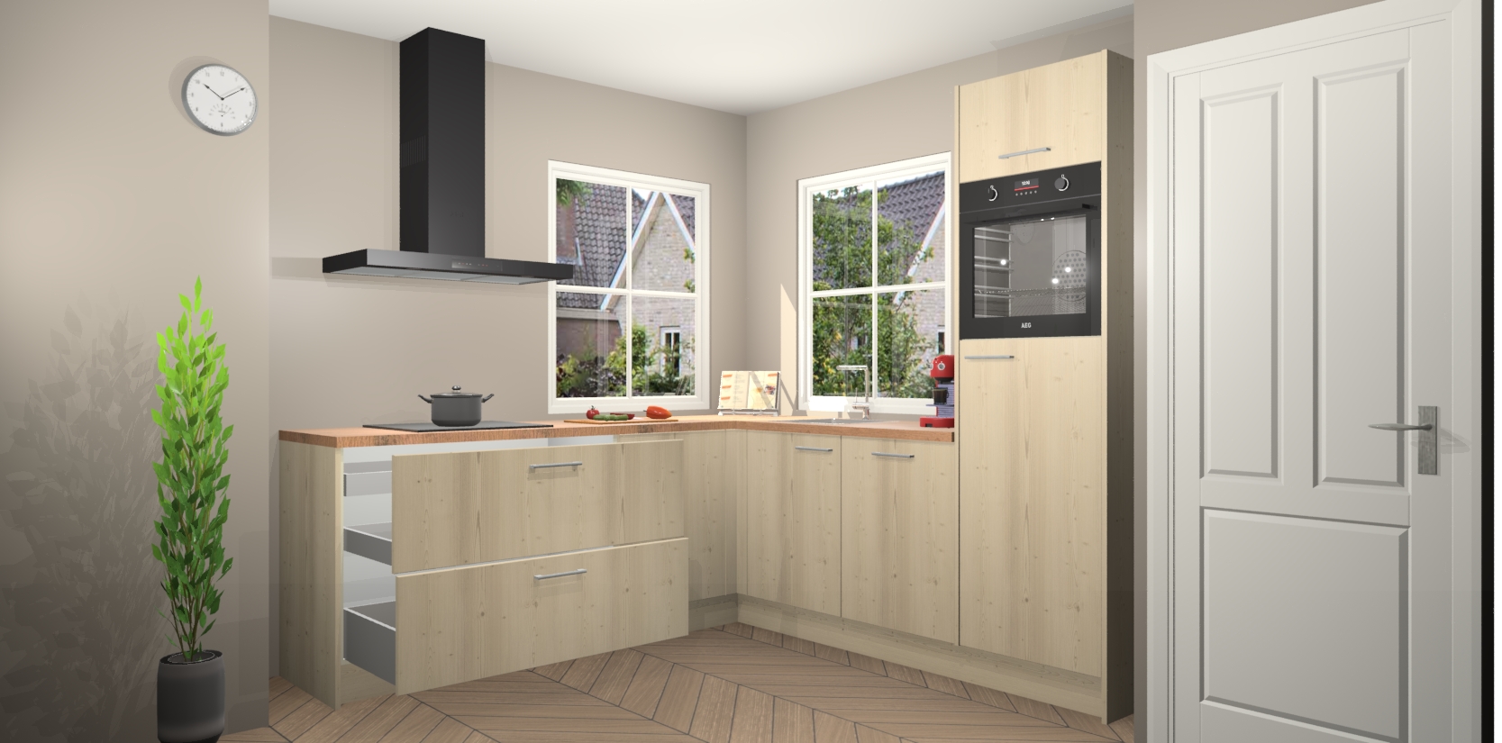 De Vuren keuken Pai bevat vijf essentiële inbouwapparaten - een oven, inductiekookplaat, afzuigkap, vaatwasser en koelkast - zodat u er na levering meteen in kunt. Voor de slimme kopers die weten dat apparaten vaak het verschil kunnen maken tussen functioneel en luxueus, bieden we eenvoudige upgradeopties naar AEG, van oven naar combimagnetron na bestelling of naar een kookplaat met geïntrigeerde afzuiging. En met onze vaste lage prijs en snelle levering binnen zeven weken vanaf de orderbevestiging hoeft u zich geen zorgen te maken over verborgen kosten of lange levertijden die uw droomkeuken kunnen vertragen.
