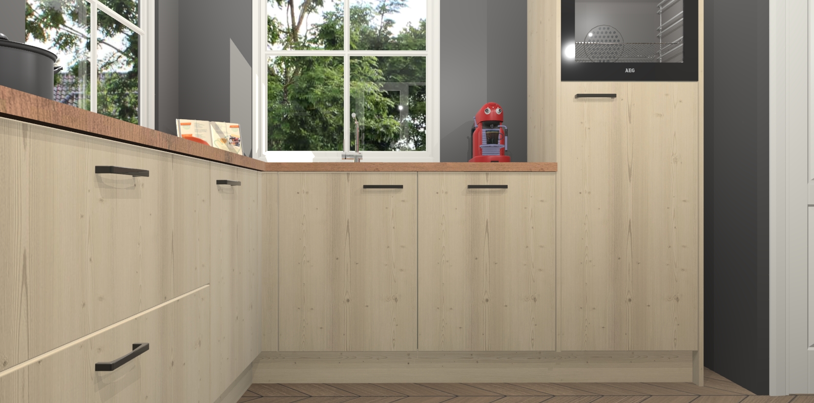 De Vuren keuken Pai bevat vijf essentiële inbouwapparaten - een oven, inductiekookplaat, afzuigkap, vaatwasser en koelkast - zodat u er na levering meteen in kunt. Voor de slimme kopers die weten dat apparaten vaak het verschil kunnen maken tussen functioneel en luxueus, bieden we eenvoudige upgradeopties naar AEG, van oven naar combimagnetron na bestelling of naar een kookplaat met geïntrigeerde afzuiging. En met onze vaste lage prijs en snelle levering binnen zeven weken vanaf de orderbevestiging hoeft u zich geen zorgen te maken over verborgen kosten of lange levertijden die uw droomkeuken kunnen vertragen.
