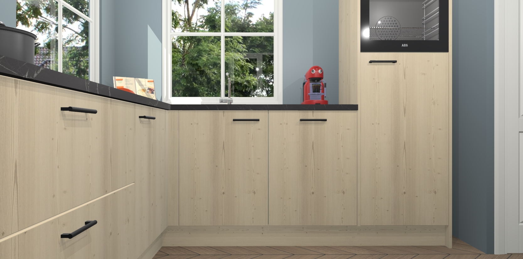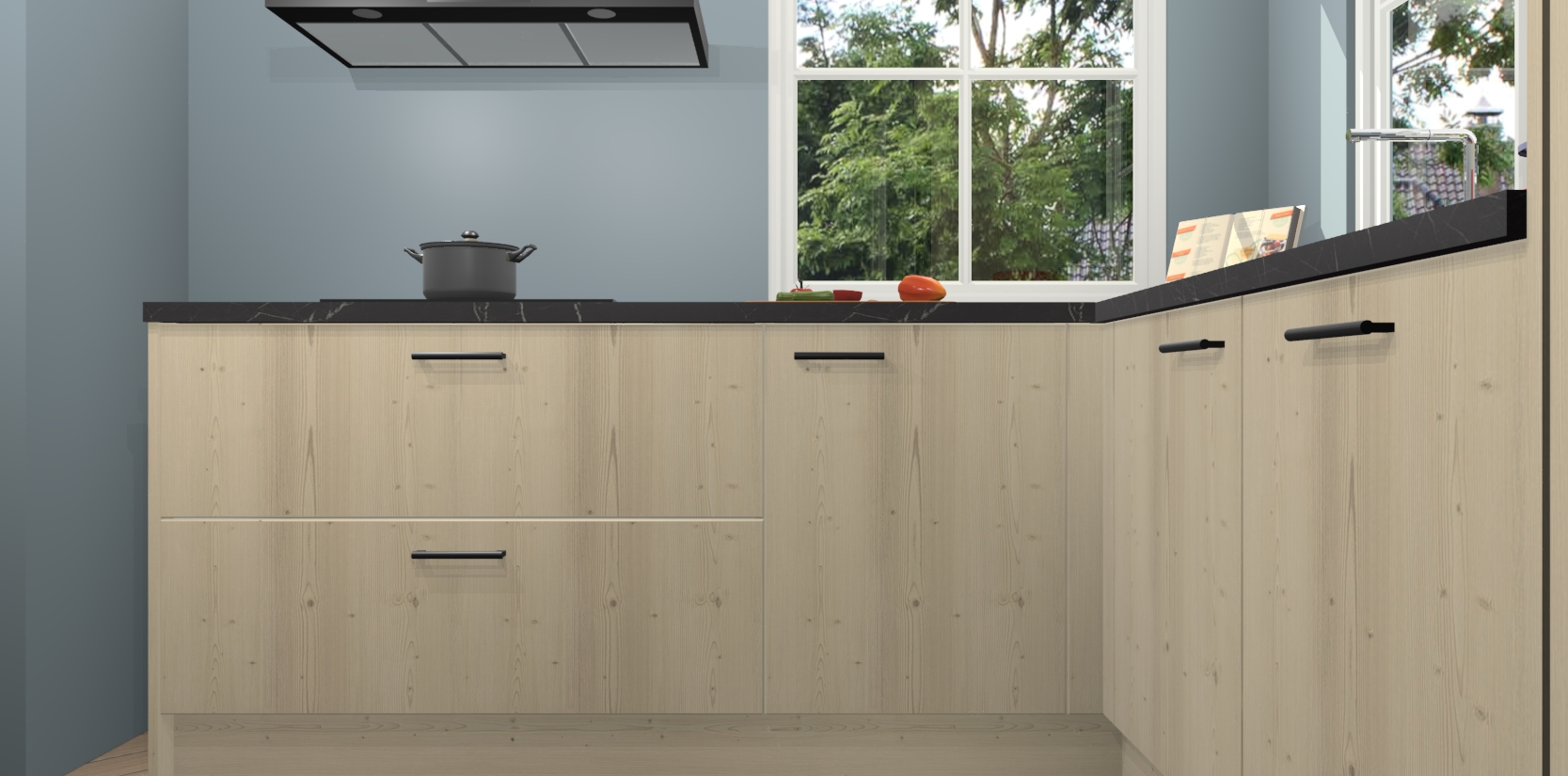 In deze box zijn alle kleuren verzameld van de deuren en werkbladen. Vraag de gratis kleurenbox aan en kijk thuis rustig verder!