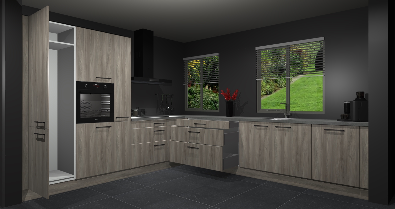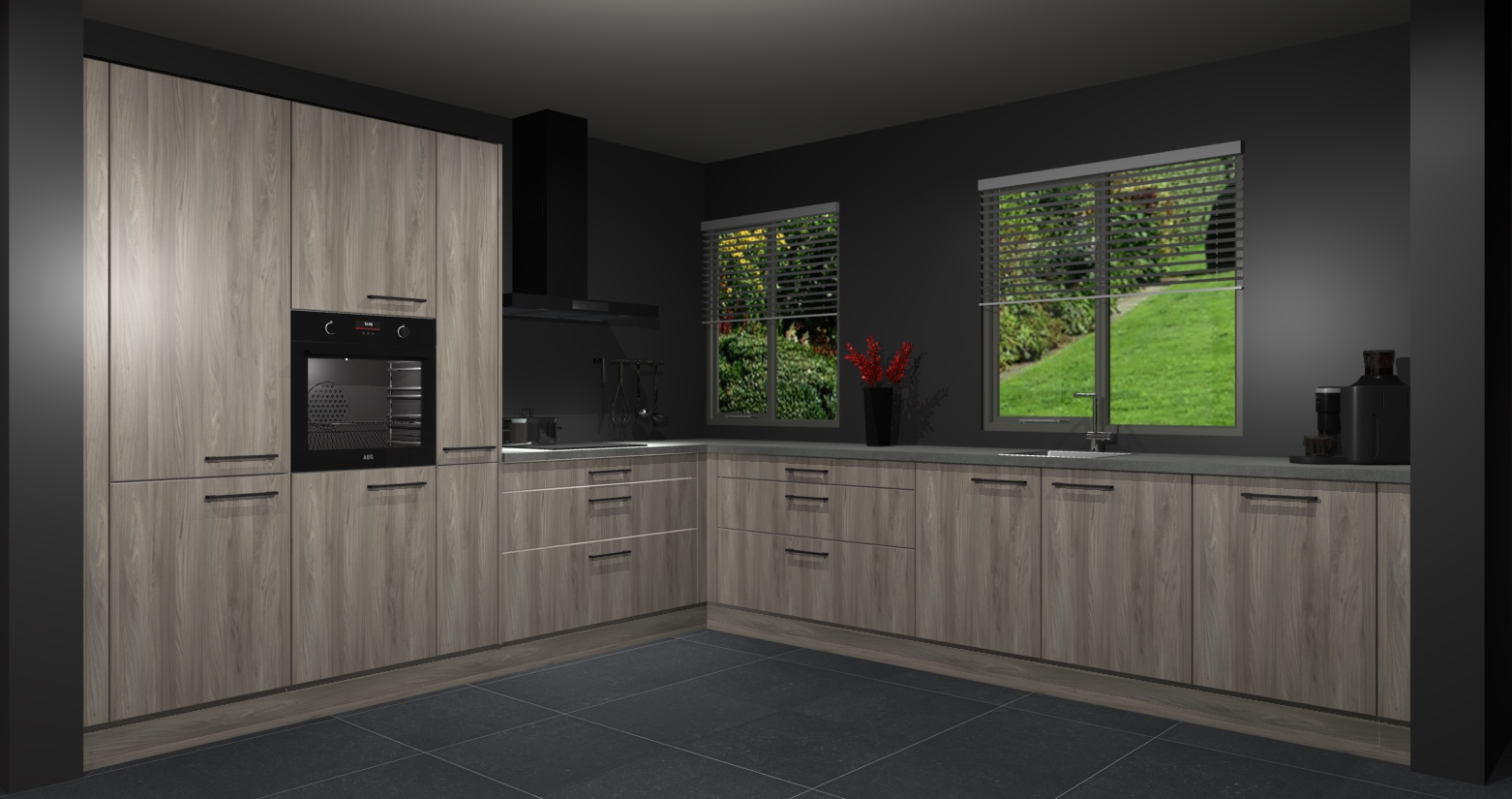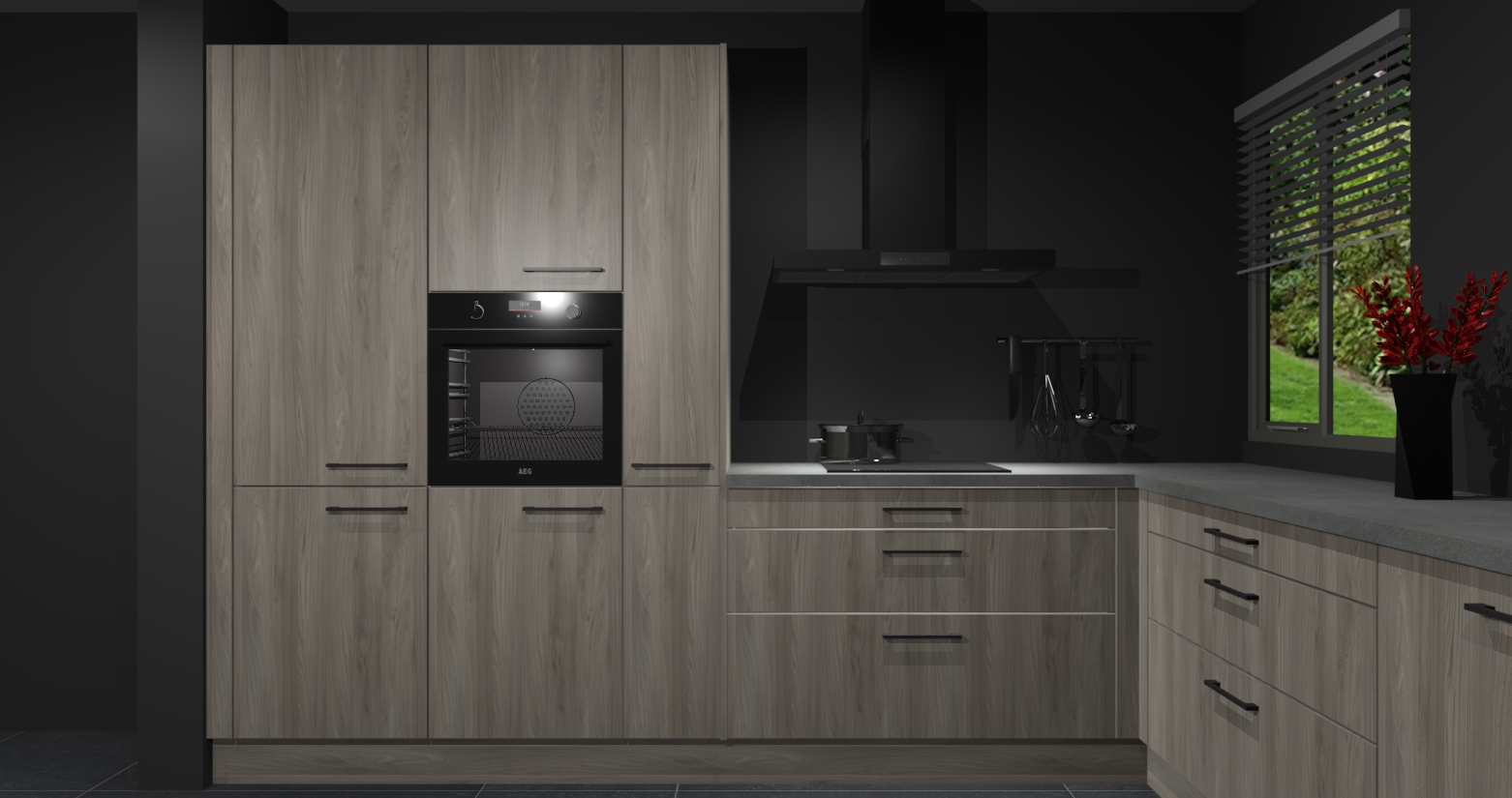 Welkom bij de Vuren keuken Palermo. Deze prachtige keuken zal de komende jaren het middelpunt van de belangstelling in uw huis zijn. Uitgerust met vijf inbouwapparaten komt u nooit kookgereedschap tekort. Bovendien geeft de warme houtlook elke ruimte een uitnodigende en tijdloze uitstraling.