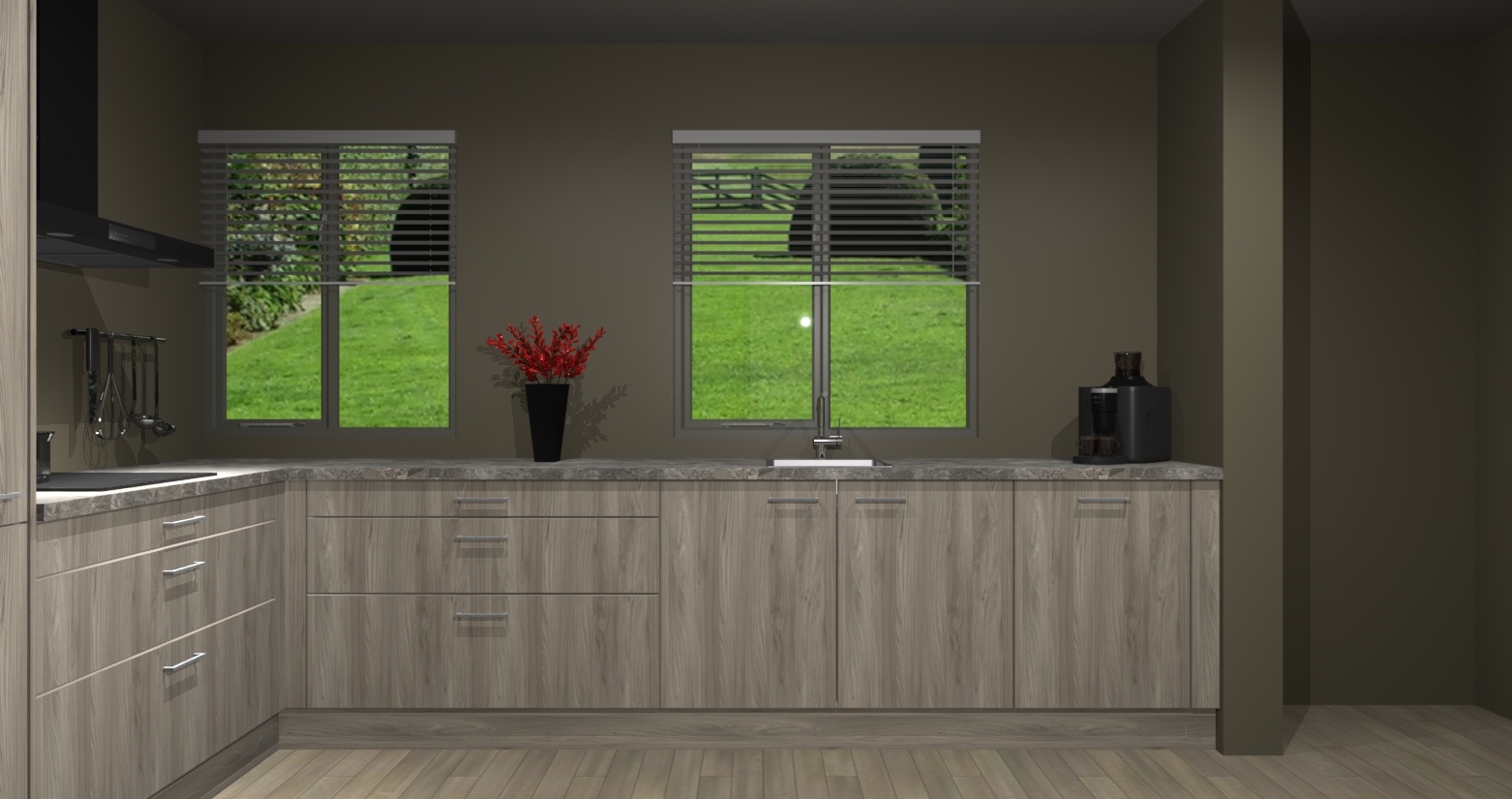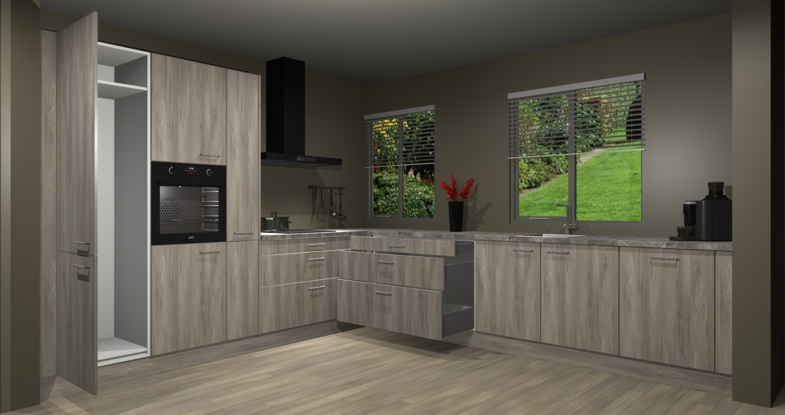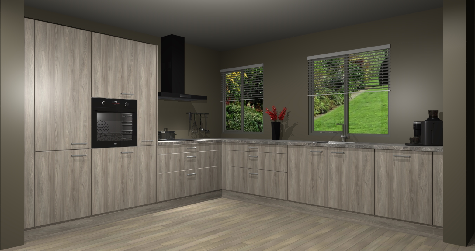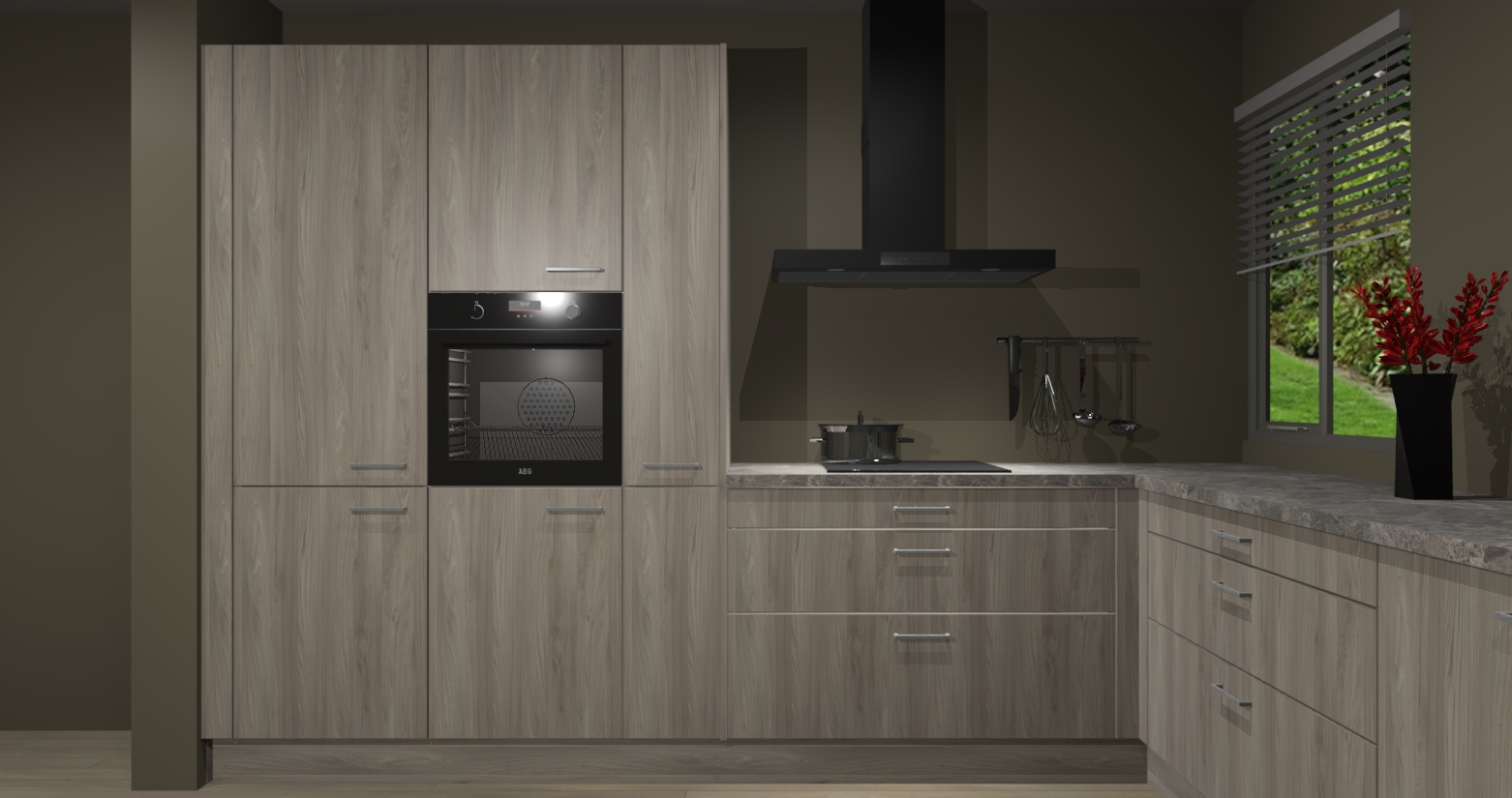 Welkom bij de Vuren keuken Palermo. Deze prachtige keuken zal de komende jaren het middelpunt van de belangstelling in uw huis zijn. Uitgerust met vijf inbouwapparaten komt u nooit kookgereedschap tekort. Bovendien geeft de warme houtlook elke ruimte een uitnodigende en tijdloze uitstraling.