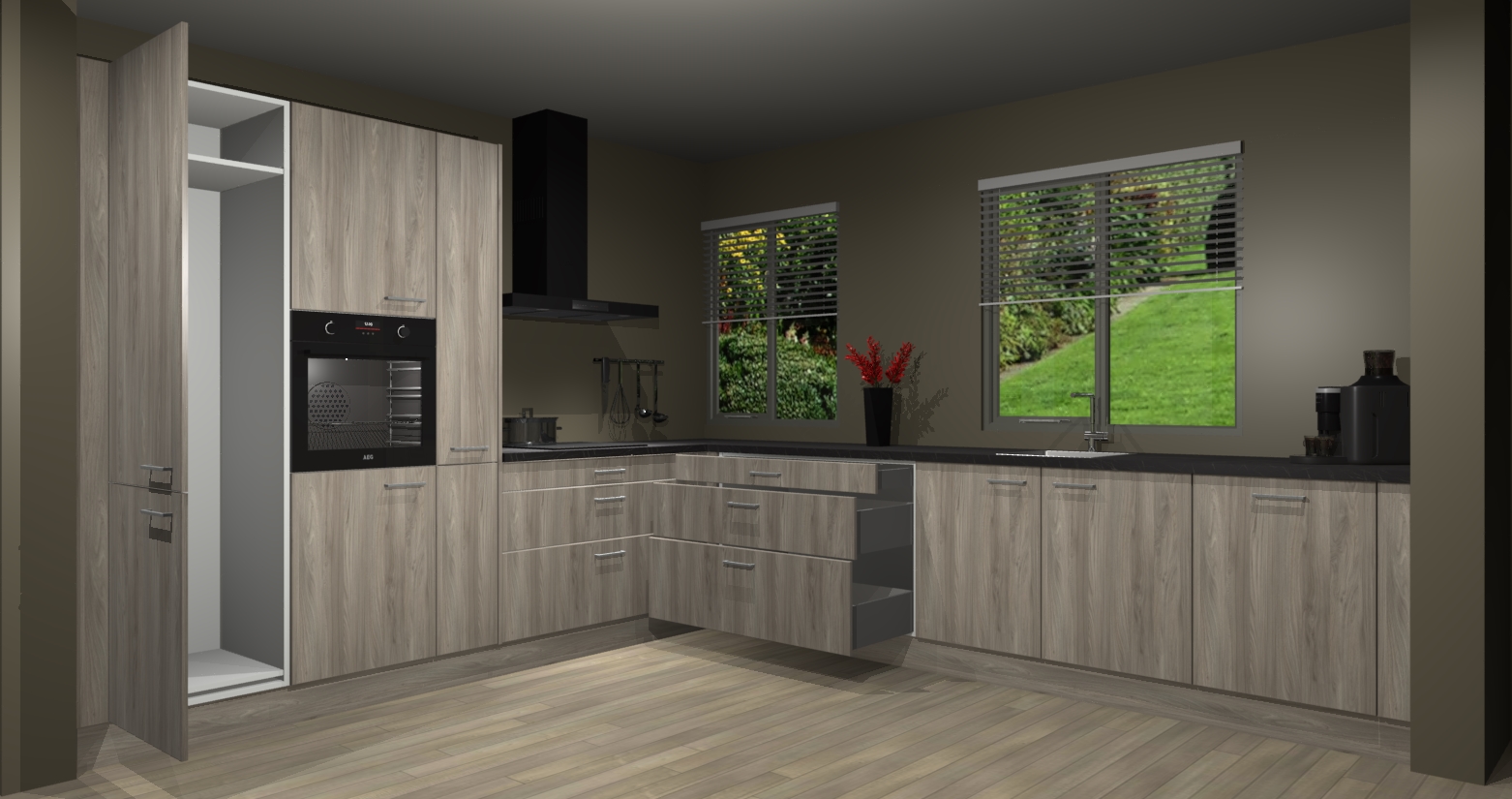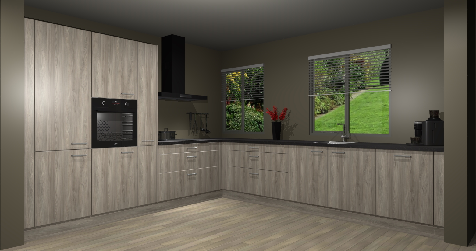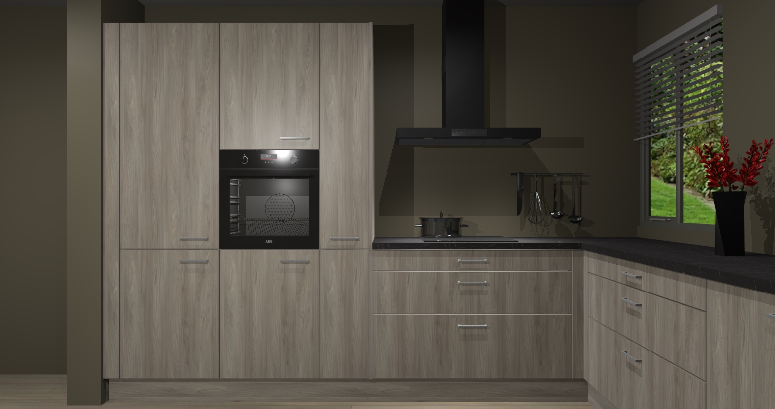 Welkom bij de Vuren keuken Palermo. Deze prachtige keuken zal de komende jaren het middelpunt van de belangstelling in uw huis zijn. Uitgerust met vijf inbouwapparaten komt u nooit kookgereedschap tekort. Bovendien geeft de warme houtlook elke ruimte een uitnodigende en tijdloze uitstraling.