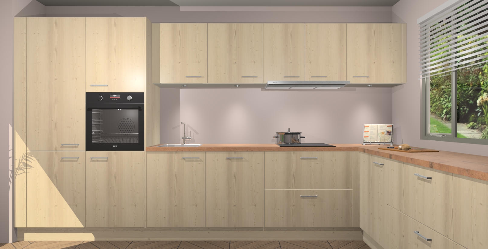 Verwelkom de natuurlijke warmte van de Vuren keuken Petten in uw huis. Deze prachtige hoekkeuken met zijn moderne design en warme houten look geeft u meer dan genoeg opbergruimte om uw comfortabel te voelen in uw keuken. Geniet van soft-close deuren die al uw gasten het gevoel zullen geven dat ze zich in een luxueuze ruimte bevinden.
