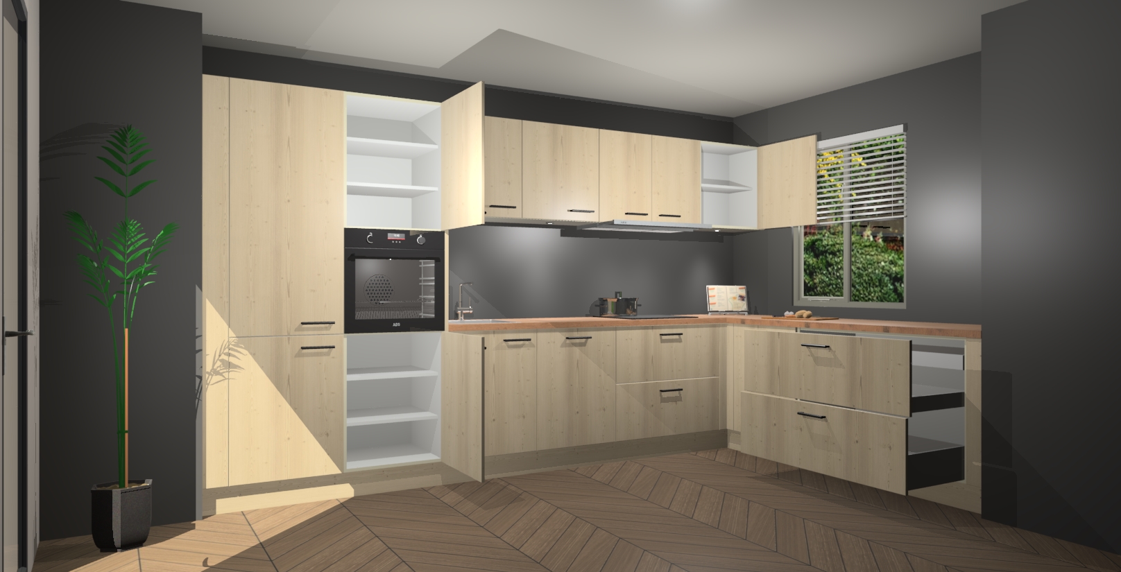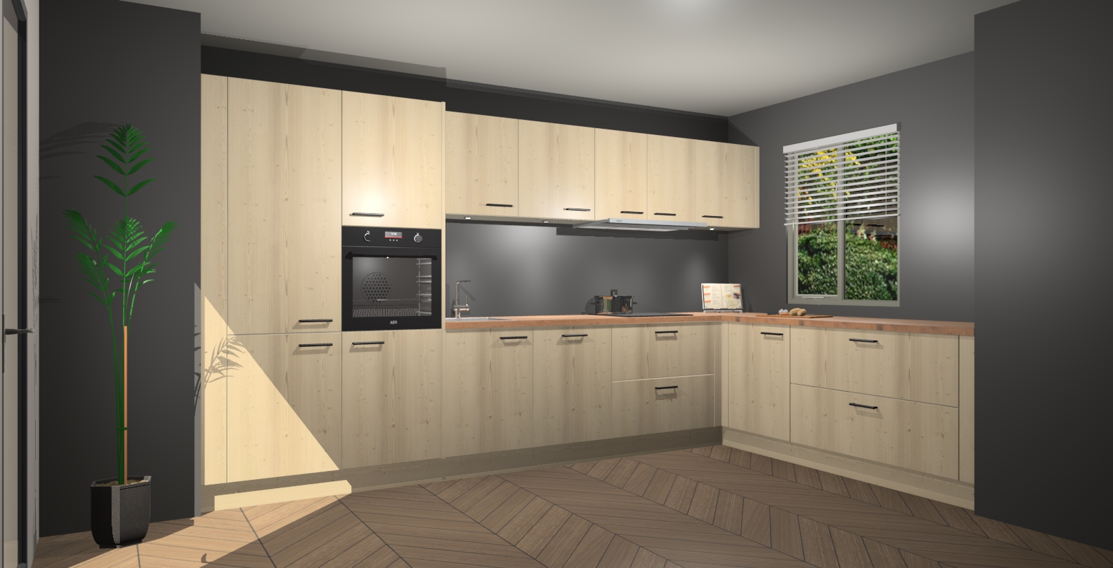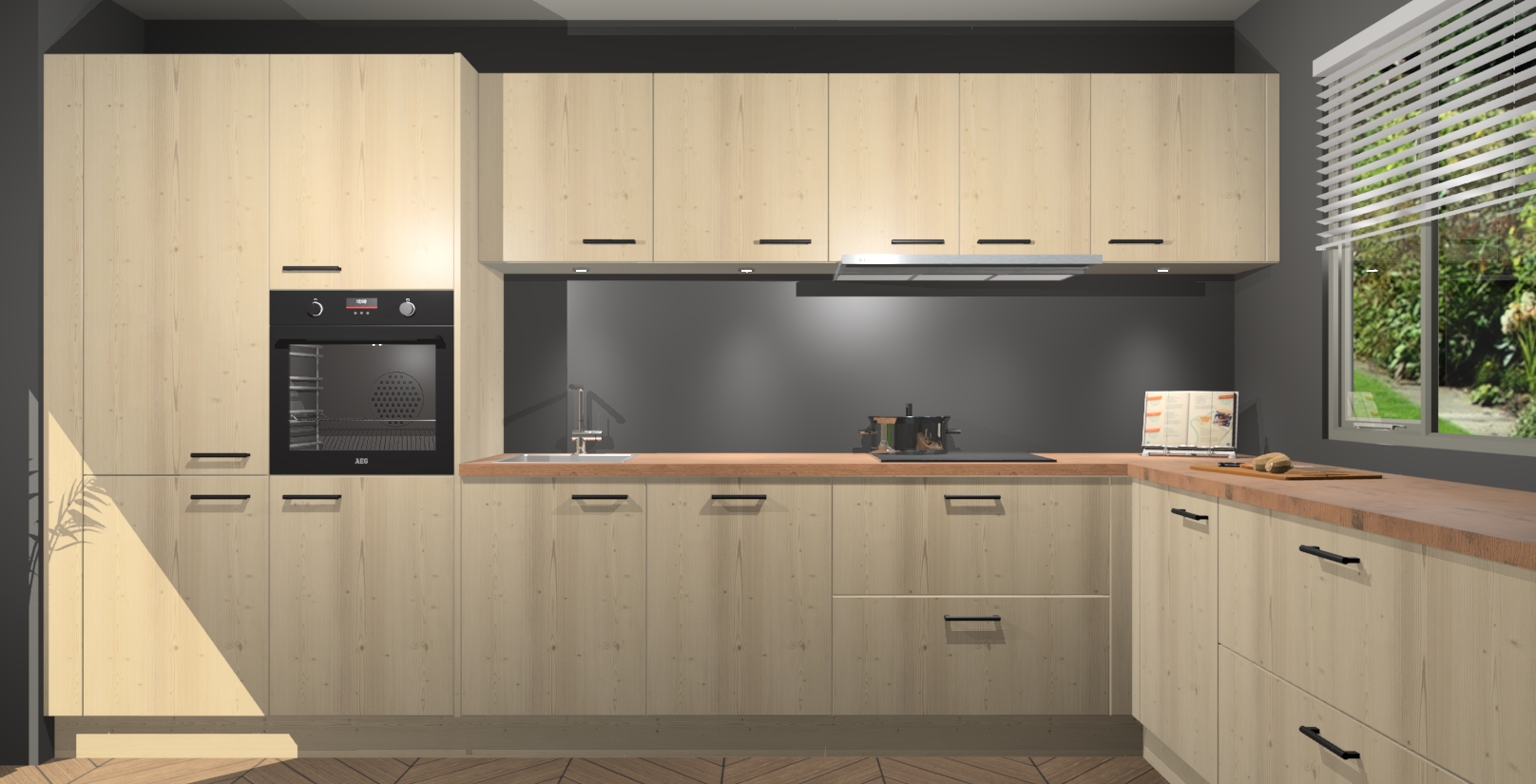 Verwelkom de natuurlijke warmte van de Vuren keuken Petten in uw huis. Deze prachtige hoekkeuken met zijn moderne design en warme houten look geeft u meer dan genoeg opbergruimte om uw comfortabel te voelen in uw keuken. Geniet van soft-close deuren die al uw gasten het gevoel zullen geven dat ze zich in een luxueuze ruimte bevinden.