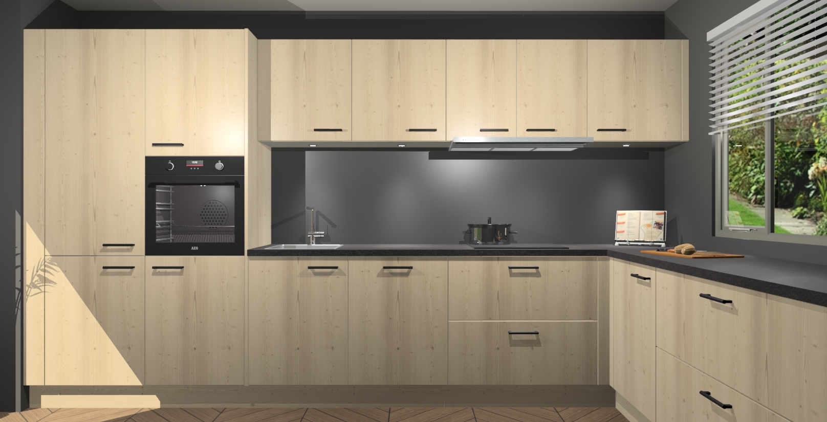 Verwelkom de natuurlijke warmte van de Vuren keuken Petten in uw huis. Deze prachtige hoekkeuken met zijn moderne design en warme houten look geeft u meer dan genoeg opbergruimte om uw comfortabel te voelen in uw keuken. Geniet van soft-close deuren die al uw gasten het gevoel zullen geven dat ze zich in een luxueuze ruimte bevinden.