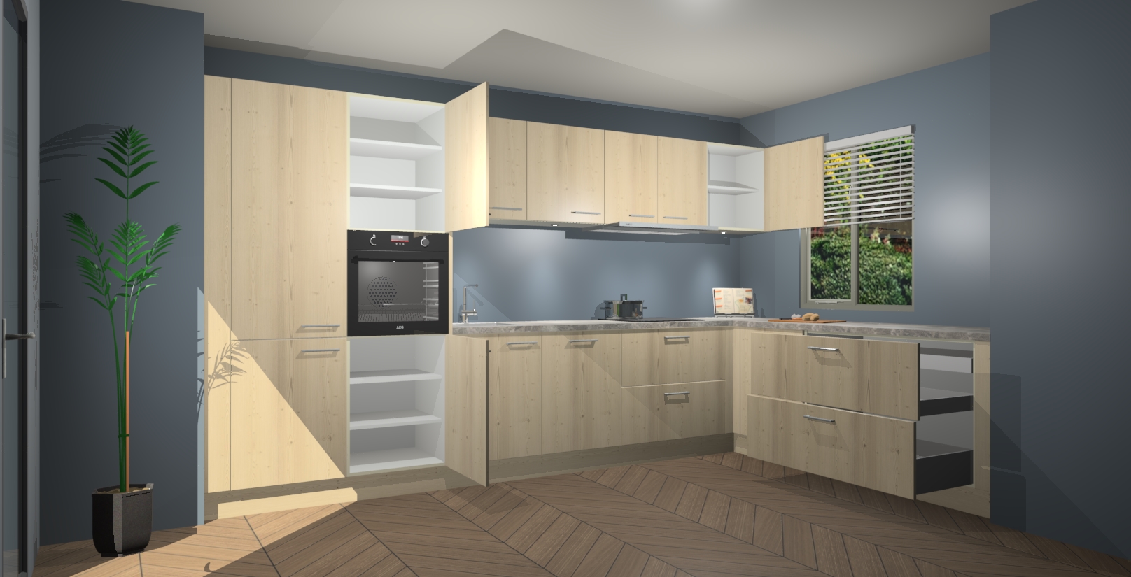 Inclusief plinten, stelpoten en werkblad