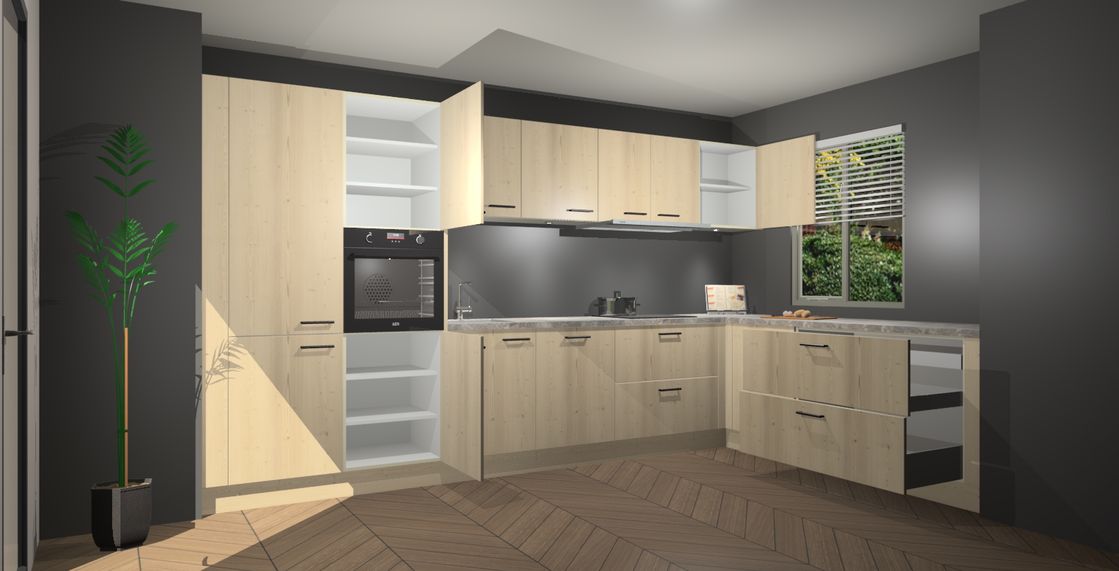 Verwelkom de natuurlijke warmte van de Vuren keuken Petten in uw huis. Deze prachtige hoekkeuken met zijn moderne design en warme houten look geeft u meer dan genoeg opbergruimte om uw comfortabel te voelen in uw keuken. Geniet van soft-close deuren die al uw gasten het gevoel zullen geven dat ze zich in een luxueuze ruimte bevinden.
