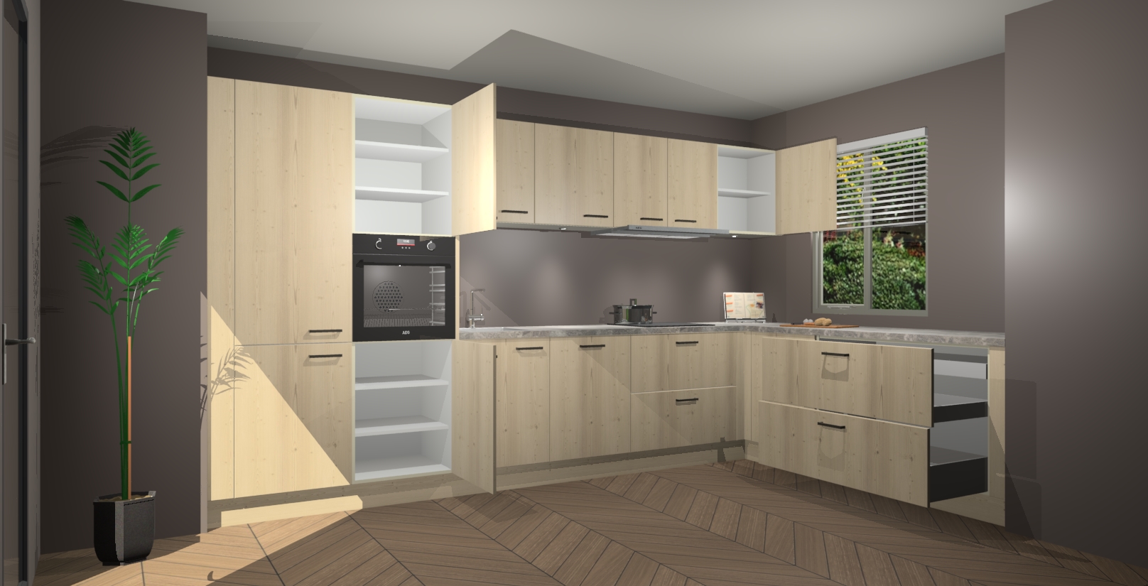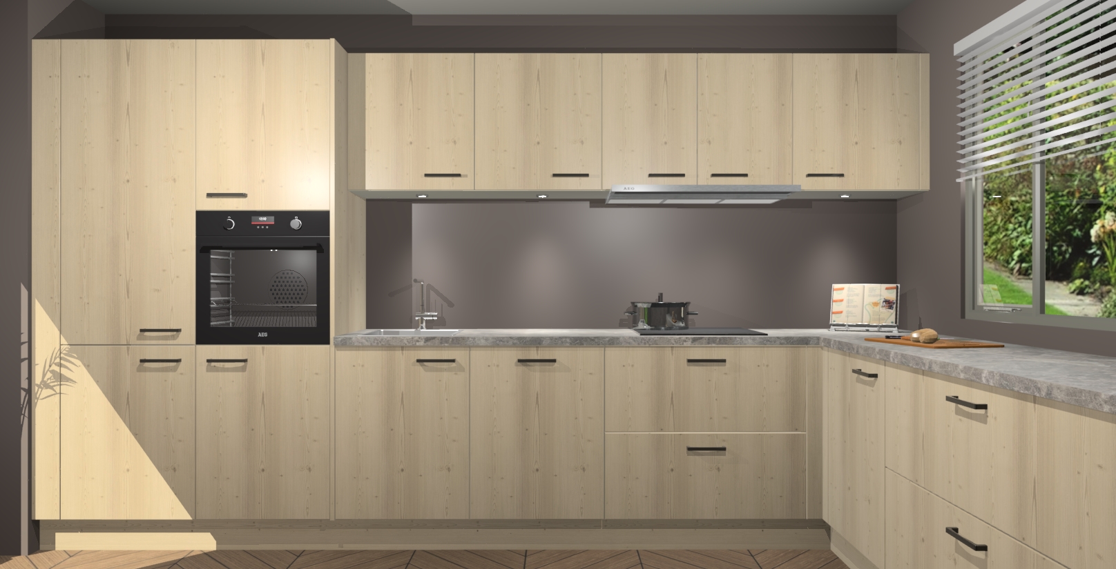Verwelkom de natuurlijke warmte van de Vuren keuken Petten in uw huis. Deze prachtige hoekkeuken met zijn moderne design en warme houten look geeft u meer dan genoeg opbergruimte om uw comfortabel te voelen in uw keuken. Geniet van soft-close deuren die al uw gasten het gevoel zullen geven dat ze zich in een luxueuze ruimte bevinden.