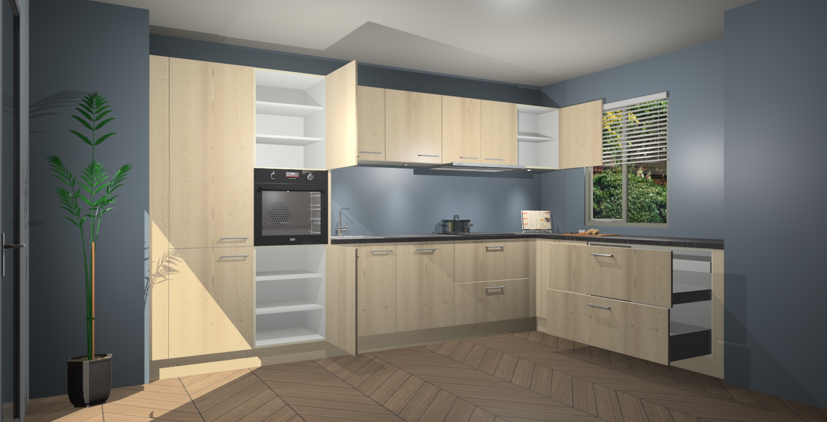 Verwelkom de natuurlijke warmte van de Vuren keuken Petten in uw huis. Deze prachtige hoekkeuken met zijn moderne design en warme houten look geeft u meer dan genoeg opbergruimte om uw comfortabel te voelen in uw keuken. Geniet van soft-close deuren die al uw gasten het gevoel zullen geven dat ze zich in een luxueuze ruimte bevinden.