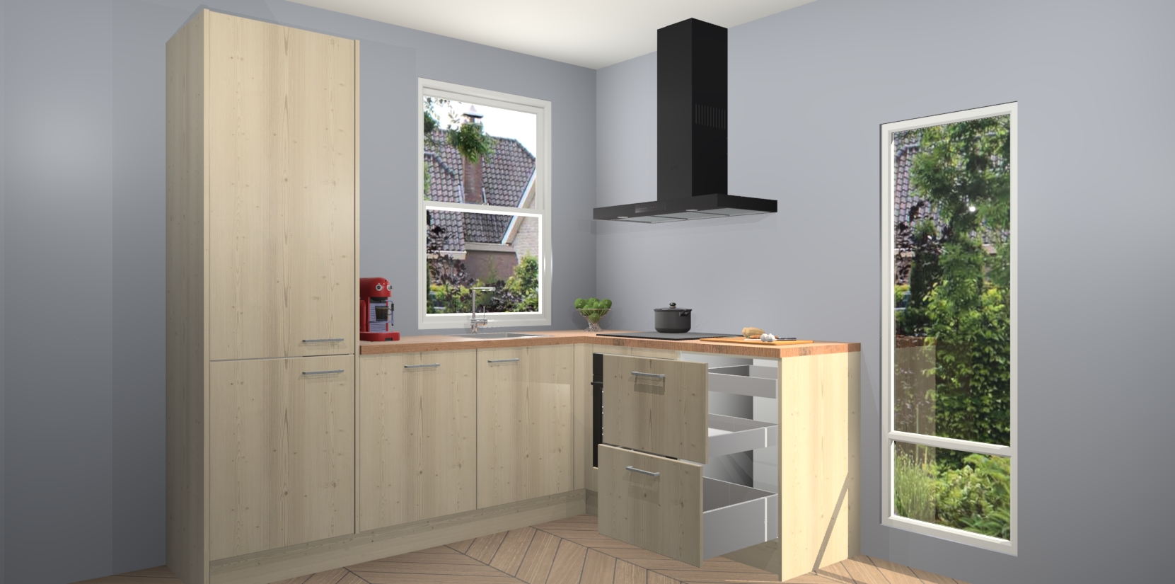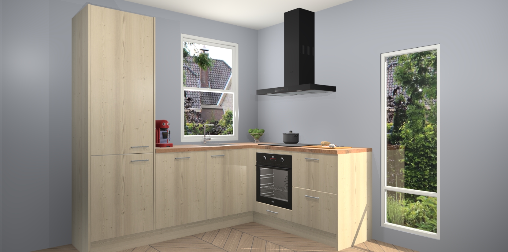 De prachtige Vuren keuken Phuket is de perfecte keuze als u op zoek bent naar een moderne hoekkeuken met alle luxe en comfort die u kunt verwachten! De uitstraling in het houtlook-design draagt bij aan de warme sfeer die u nu al voelt wanneer u er naar kijkt. Heeft u genoeg van ouderwetse keukens? Probeer dan direct deze moderne, mooie hoekkeukens en laat iedereen verbluft achter!