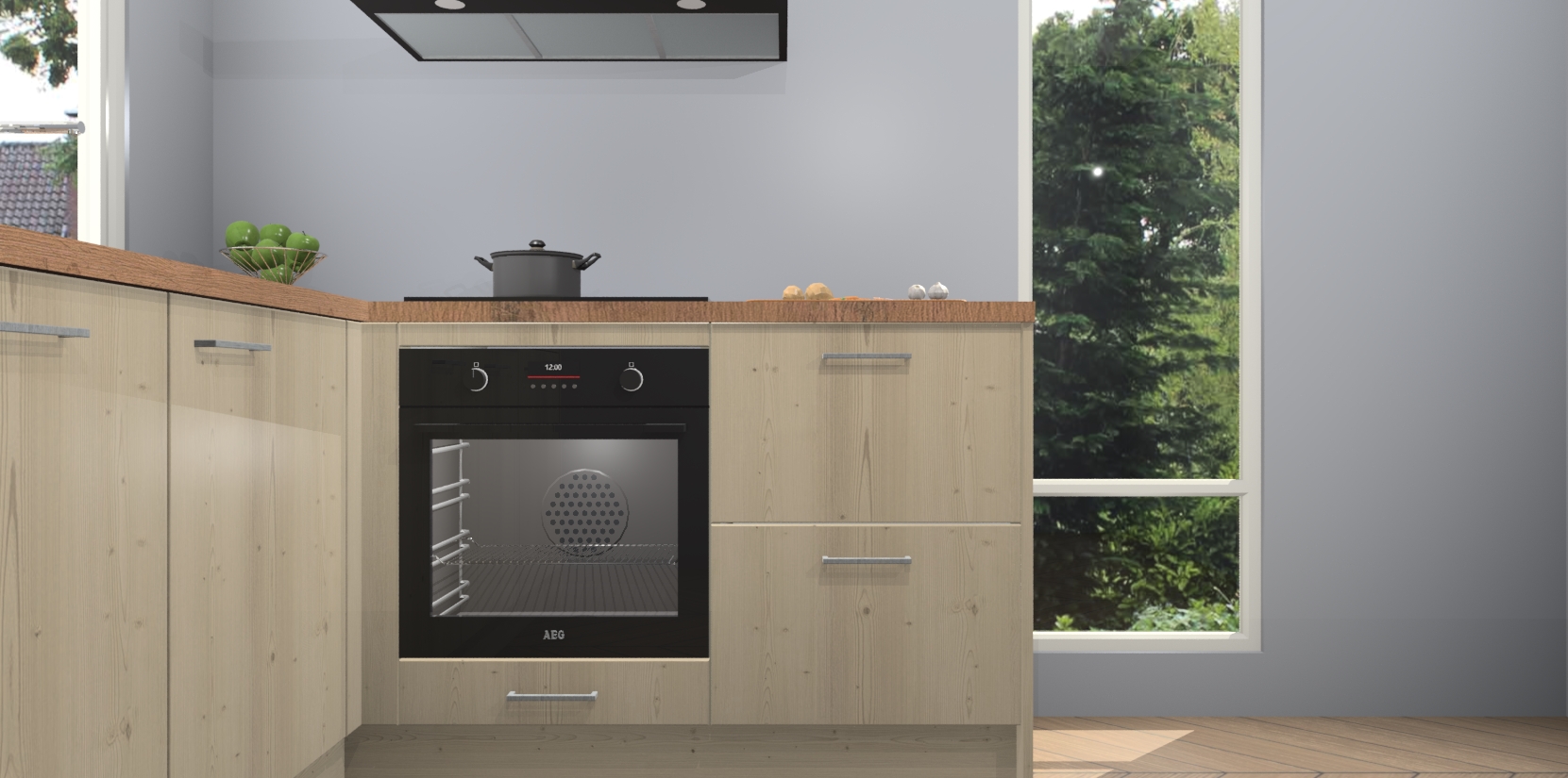 De Vuren keuken Phuket heeft alles wat u maar kunt wensen. Niet alleen zijn er softclose deuren, maar ook 5 ingebouwde apparaten: een oven, inductiekookplaat, afzuigkap, vaatwasser en koelkast - waarbij u later gemakkelijk naar het AEG merk, van inductiekookplaat naar kookplaat met geïntegreerde afzuiging of van oven naar combimagnetron kunt upgraden. Dat alles tegen een vast laag tarief! Bovendien geeft de Vuren keuken Phuket supersnelle levering van 7 weken. Echt iets voor u als u er niet op wilt wachten om het resultaat te zien in eigen keuken!