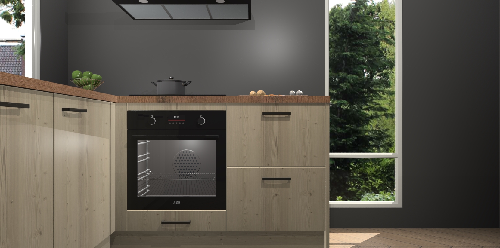 De Vuren keuken Phuket heeft alles wat u maar kunt wensen. Niet alleen zijn er softclose deuren, maar ook 5 ingebouwde apparaten: een oven, inductiekookplaat, afzuigkap, vaatwasser en koelkast - waarbij u later gemakkelijk naar het AEG merk, van inductiekookplaat naar kookplaat met geïntegreerde afzuiging of van oven naar combimagnetron kunt upgraden. Dat alles tegen een vast laag tarief! Bovendien geeft de Vuren keuken Phuket supersnelle levering van 7 weken. Echt iets voor u als u er niet op wilt wachten om het resultaat te zien in eigen keuken!