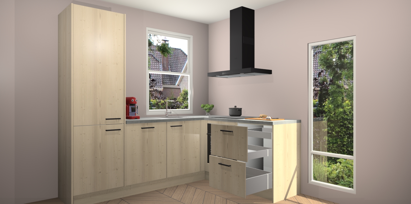 De prachtige Vuren keuken Phuket is de perfecte keuze als u op zoek bent naar een moderne hoekkeuken met alle luxe en comfort die u kunt verwachten! De uitstraling in het houtlook-design draagt bij aan de warme sfeer die u nu al voelt wanneer u er naar kijkt. Heeft u genoeg van ouderwetse keukens? Probeer dan direct deze moderne, mooie hoekkeukens en laat iedereen verbluft achter!