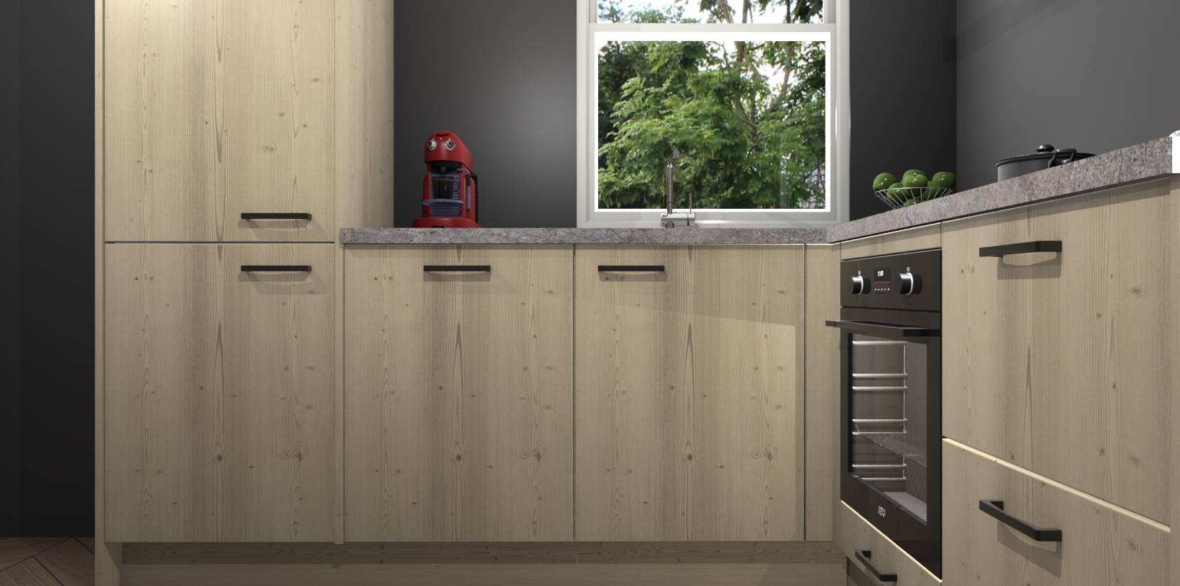 De prachtige Vuren keuken Phuket is de perfecte keuze als u op zoek bent naar een moderne hoekkeuken met alle luxe en comfort die u kunt verwachten! De uitstraling in het houtlook-design draagt bij aan de warme sfeer die u nu al voelt wanneer u er naar kijkt. Heeft u genoeg van ouderwetse keukens? Probeer dan direct deze moderne, mooie hoekkeukens en laat iedereen verbluft achter!