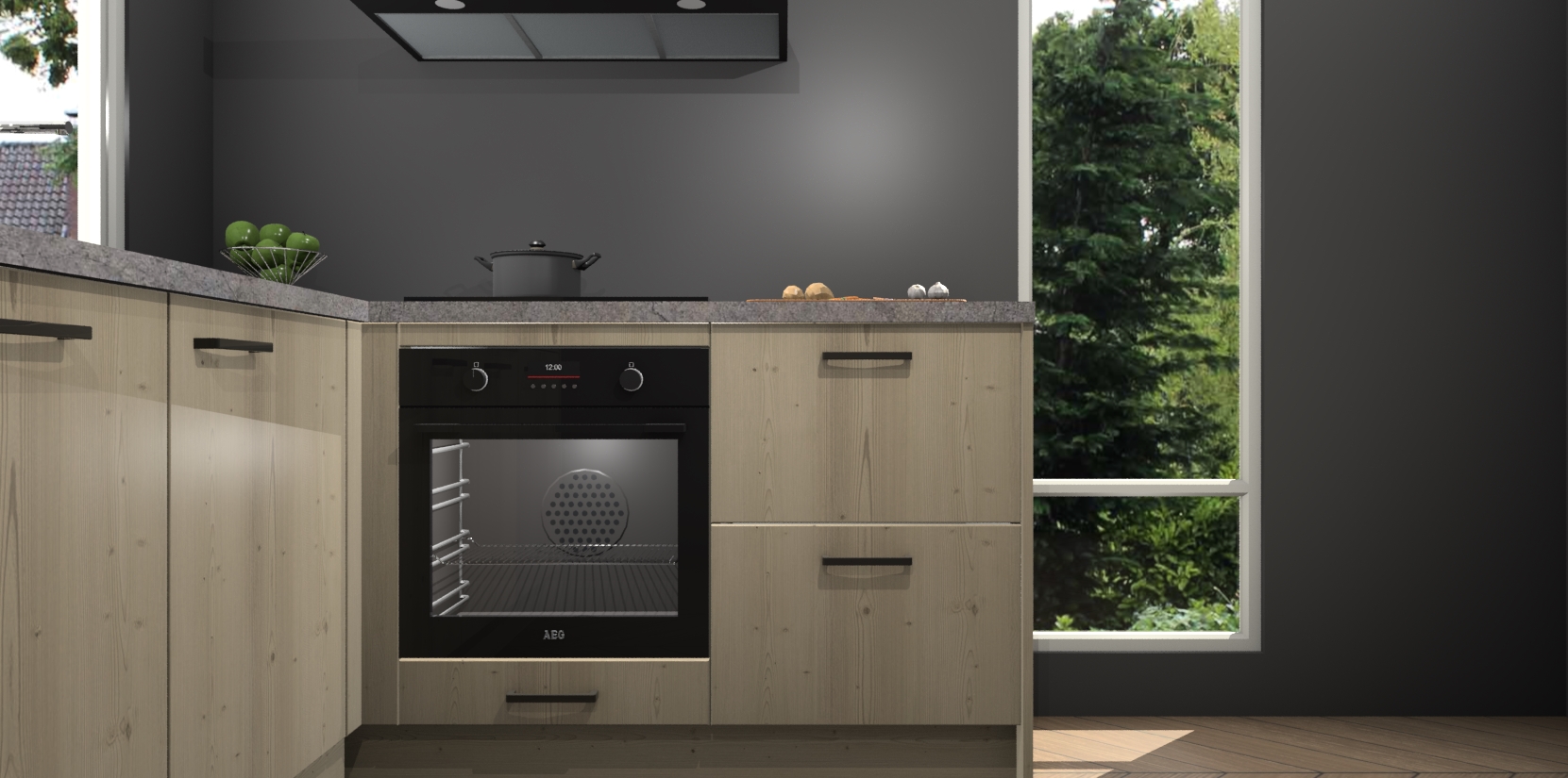 De Vuren keuken Phuket heeft alles wat u maar kunt wensen. Niet alleen zijn er softclose deuren, maar ook 5 ingebouwde apparaten: een oven, inductiekookplaat, afzuigkap, vaatwasser en koelkast - waarbij u later gemakkelijk naar het AEG merk, van inductiekookplaat naar kookplaat met geïntegreerde afzuiging of van oven naar combimagnetron kunt upgraden. Dat alles tegen een vast laag tarief! Bovendien geeft de Vuren keuken Phuket supersnelle levering van 7 weken. Echt iets voor u als u er niet op wilt wachten om het resultaat te zien in eigen keuken!