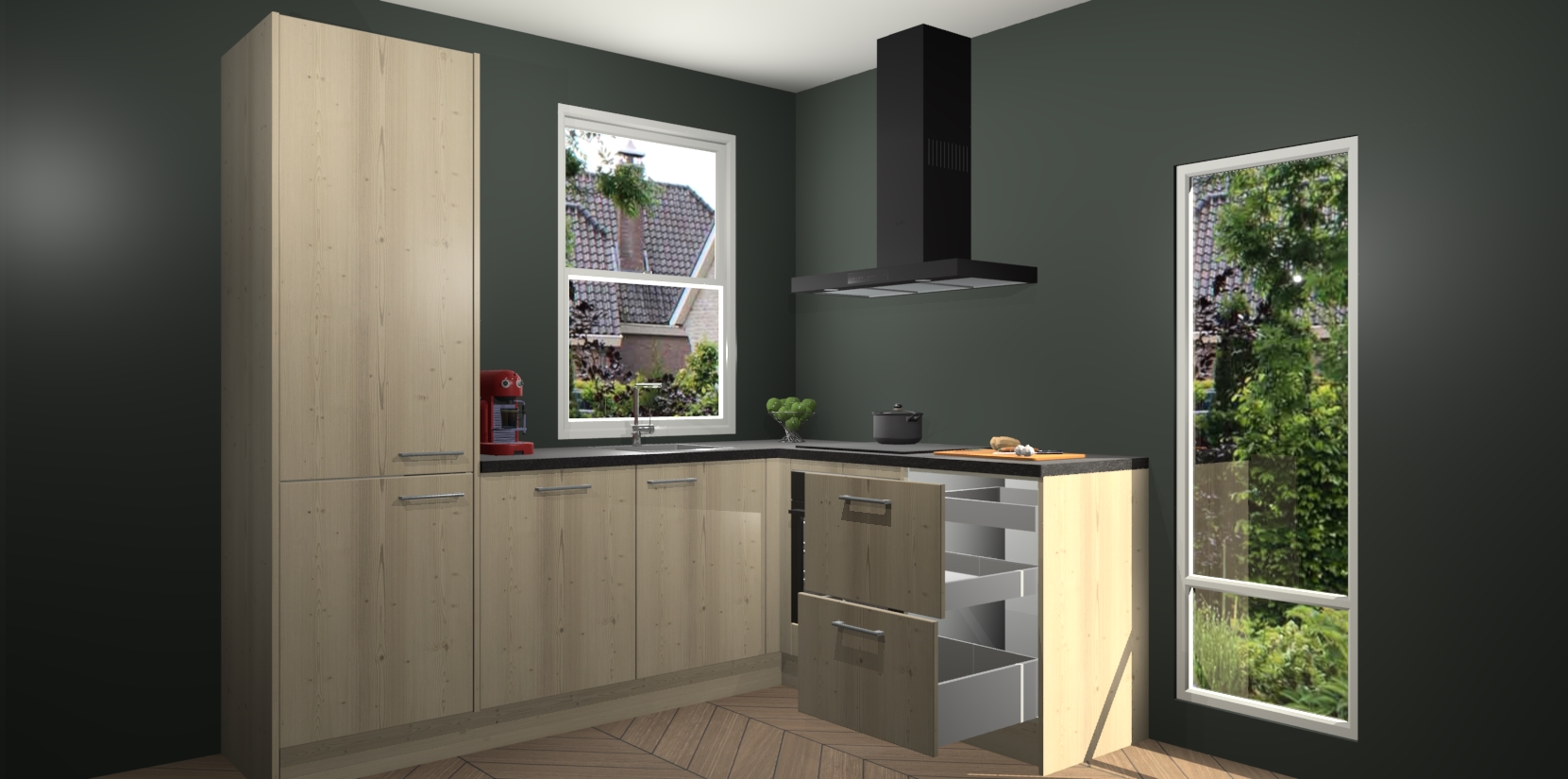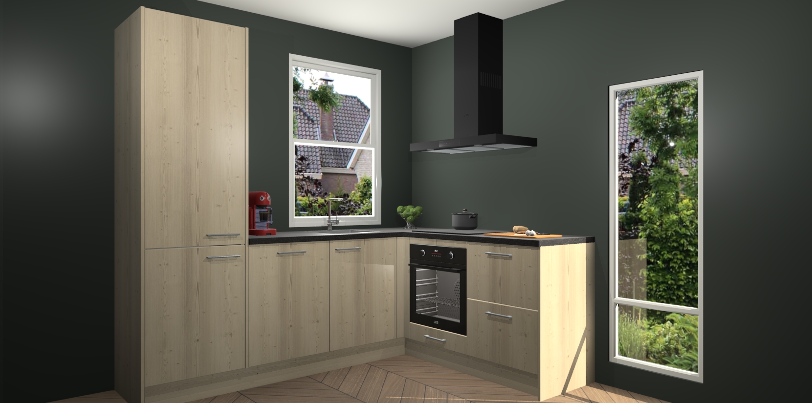 De prachtige Vuren keuken Phuket is de perfecte keuze als u op zoek bent naar een moderne hoekkeuken met alle luxe en comfort die u kunt verwachten! De uitstraling in het houtlook-design draagt bij aan de warme sfeer die u nu al voelt wanneer u er naar kijkt. Heeft u genoeg van ouderwetse keukens? Probeer dan direct deze moderne, mooie hoekkeukens en laat iedereen verbluft achter!