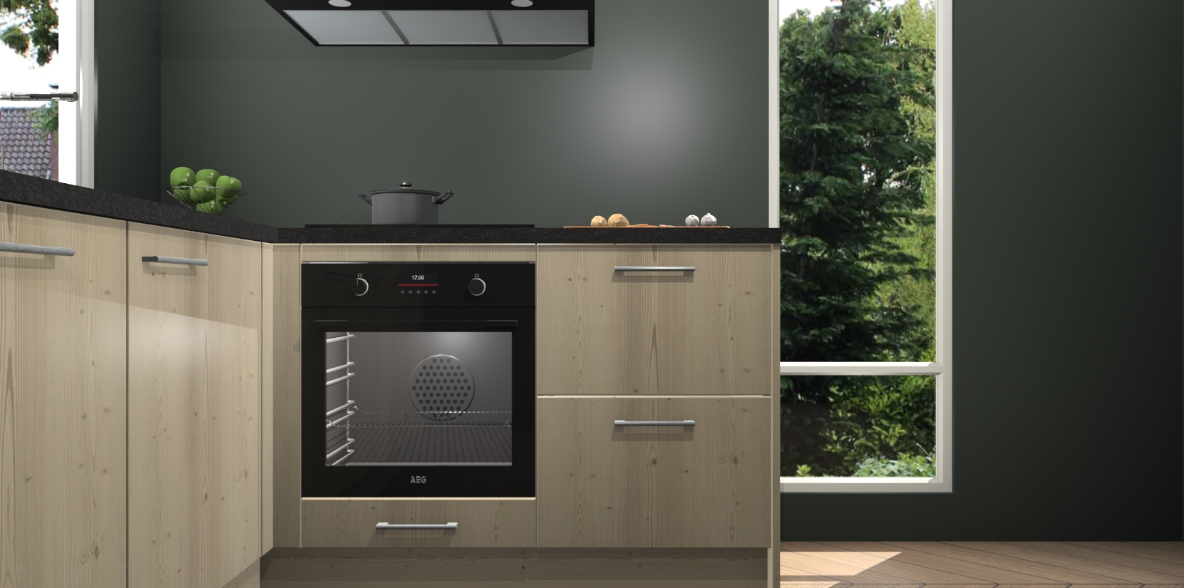 De Vuren keuken Phuket heeft alles wat u maar kunt wensen. Niet alleen zijn er softclose deuren, maar ook 5 ingebouwde apparaten: een oven, inductiekookplaat, afzuigkap, vaatwasser en koelkast - waarbij u later gemakkelijk naar het AEG merk, van inductiekookplaat naar kookplaat met geïntegreerde afzuiging of van oven naar combimagnetron kunt upgraden. Dat alles tegen een vast laag tarief! Bovendien geeft de Vuren keuken Phuket supersnelle levering van 7 weken. Echt iets voor u als u er niet op wilt wachten om het resultaat te zien in eigen keuken!