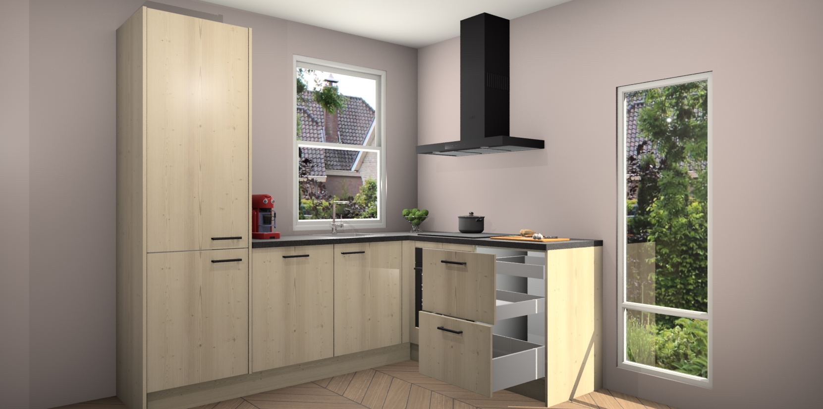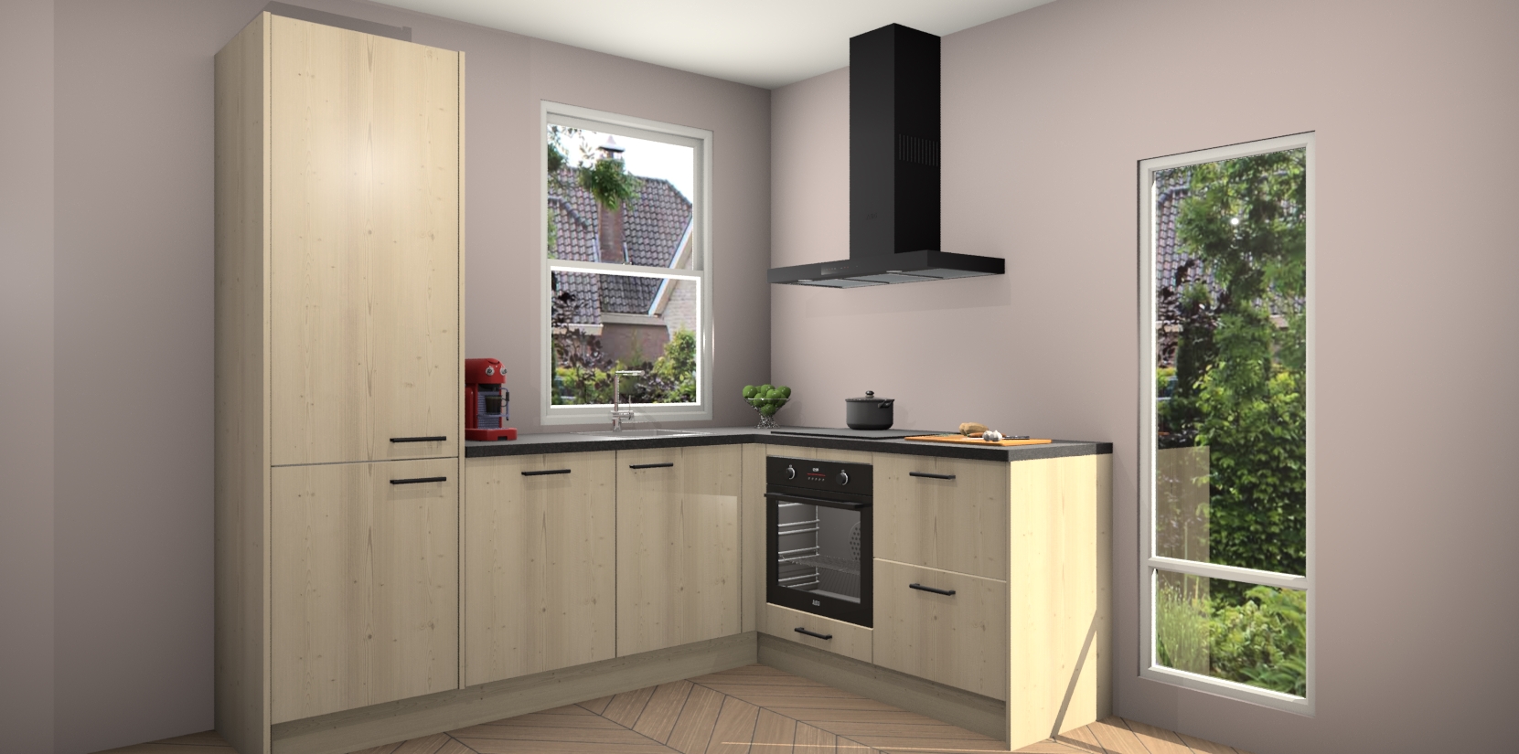 De prachtige Vuren keuken Phuket is de perfecte keuze als u op zoek bent naar een moderne hoekkeuken met alle luxe en comfort die u kunt verwachten! De uitstraling in het houtlook-design draagt bij aan de warme sfeer die u nu al voelt wanneer u er naar kijkt. Heeft u genoeg van ouderwetse keukens? Probeer dan direct deze moderne, mooie hoekkeukens en laat iedereen verbluft achter!